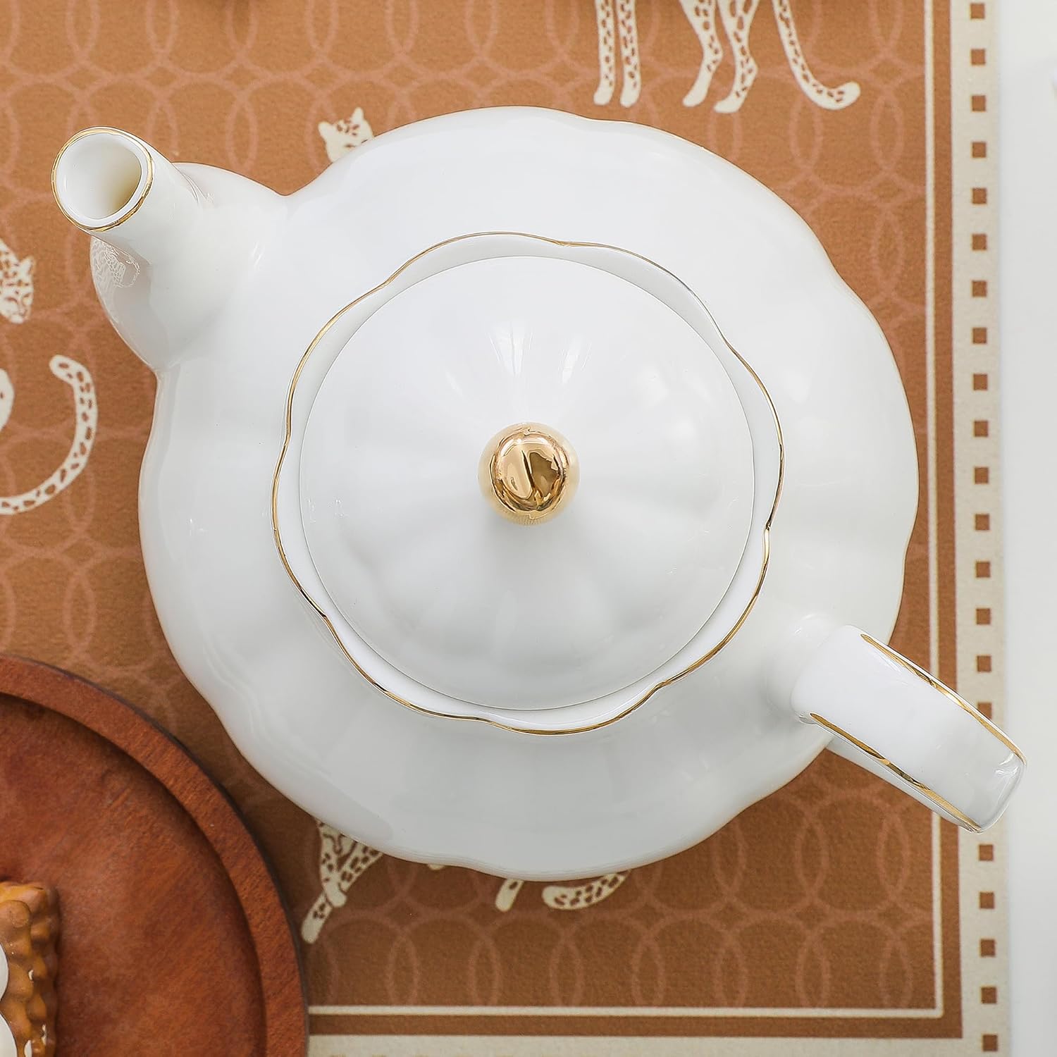 - 1. Elegant Design with Gold Accents This beautifully crafted white porcelain teapot features a classic design enhanced by delicate gold trim. Its timeless elegance makes it a perfect addition to any tea loverās collection.