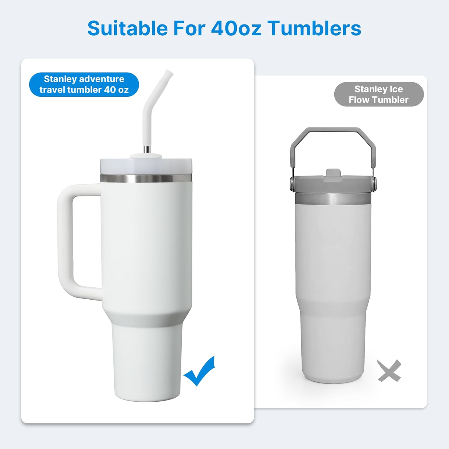 - 【Designed for 40oz Tumbler】Designed to fit perfectly with the Stanley Quencher stainless steel tumbler (H1.0 and H2.0), Stanley 40 oz tumbler with handle, and Simple Modern 40 oz tumbler, these straws provide ample length for all your drinking needs (Also fit for other brand 40oz tumbler, please confirm the tumbler size you have before purchasing.)