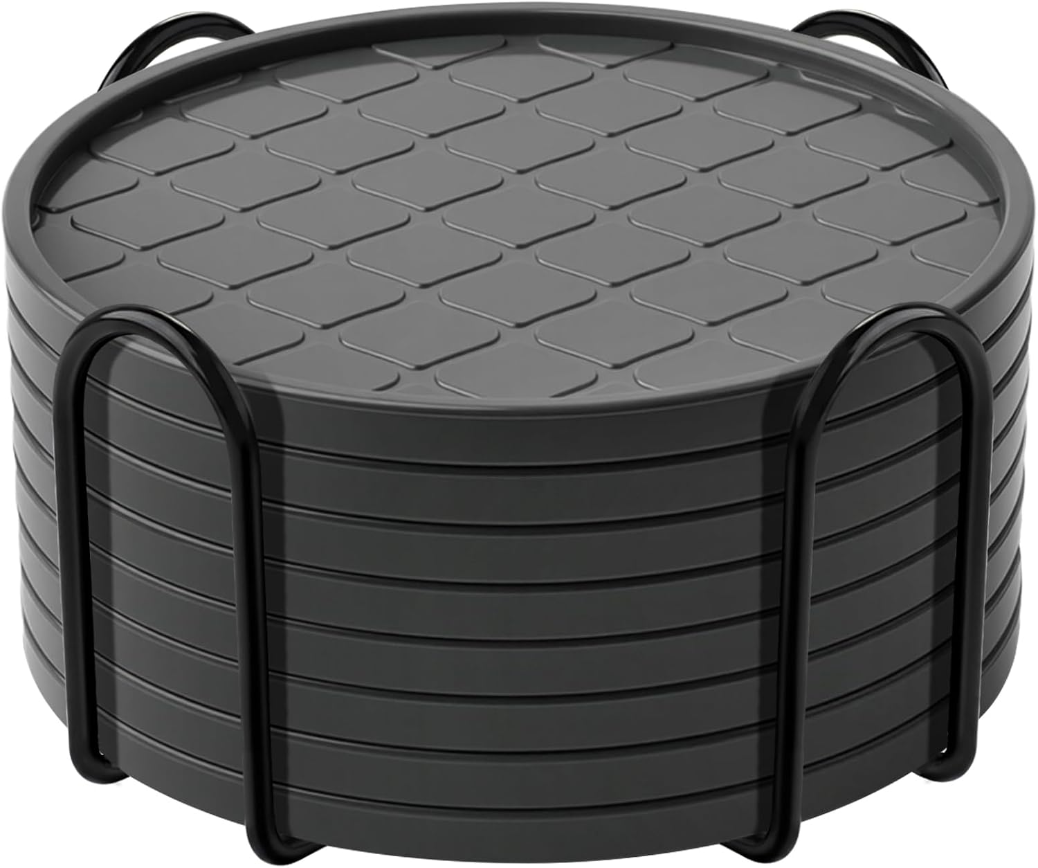 - 【Perfect Size】These coasters measure 0.24 inches (6 millimeters) in thickness and 4 inches (101 millimeters) in diameter. Boasting a minimalist and modern design, we've really honed in on the functional features that matter when you're using them.The raised rim is cleverly designed to catch more of that pesky spilled water and the condensation from your icy cold drinks. These coasters are the perfect fit for all standard cups and mugs. Whether it's your morning coffee cup, a frosty beer mug, an elegant wine glass, a sturdy whiskey tumbler, a soda can, or any other type of cup you can think of, this coaster set has got you covered and will handle them all like a pro.