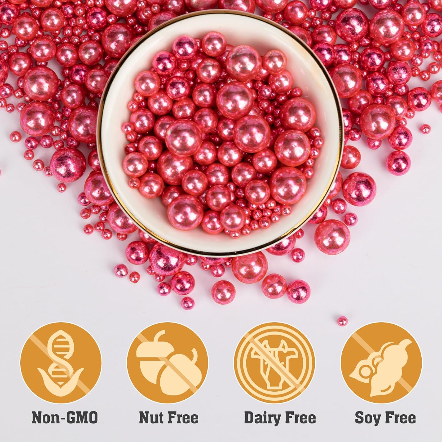 - 【100% Food-Grade Sugar Pearls】: Made from high-quality, food-safe ingredients, Twisweet rose gold pearl sprinkles are preservative-free, nut-free, dairy-free, soy-free, and Non-GMO, making them completely edible. Produced and packaged in a carefully controlled, allergen-free environment, these sugar sprinkles ensure your desserts are safe to enjoy and perfect for sharing with family and friends.