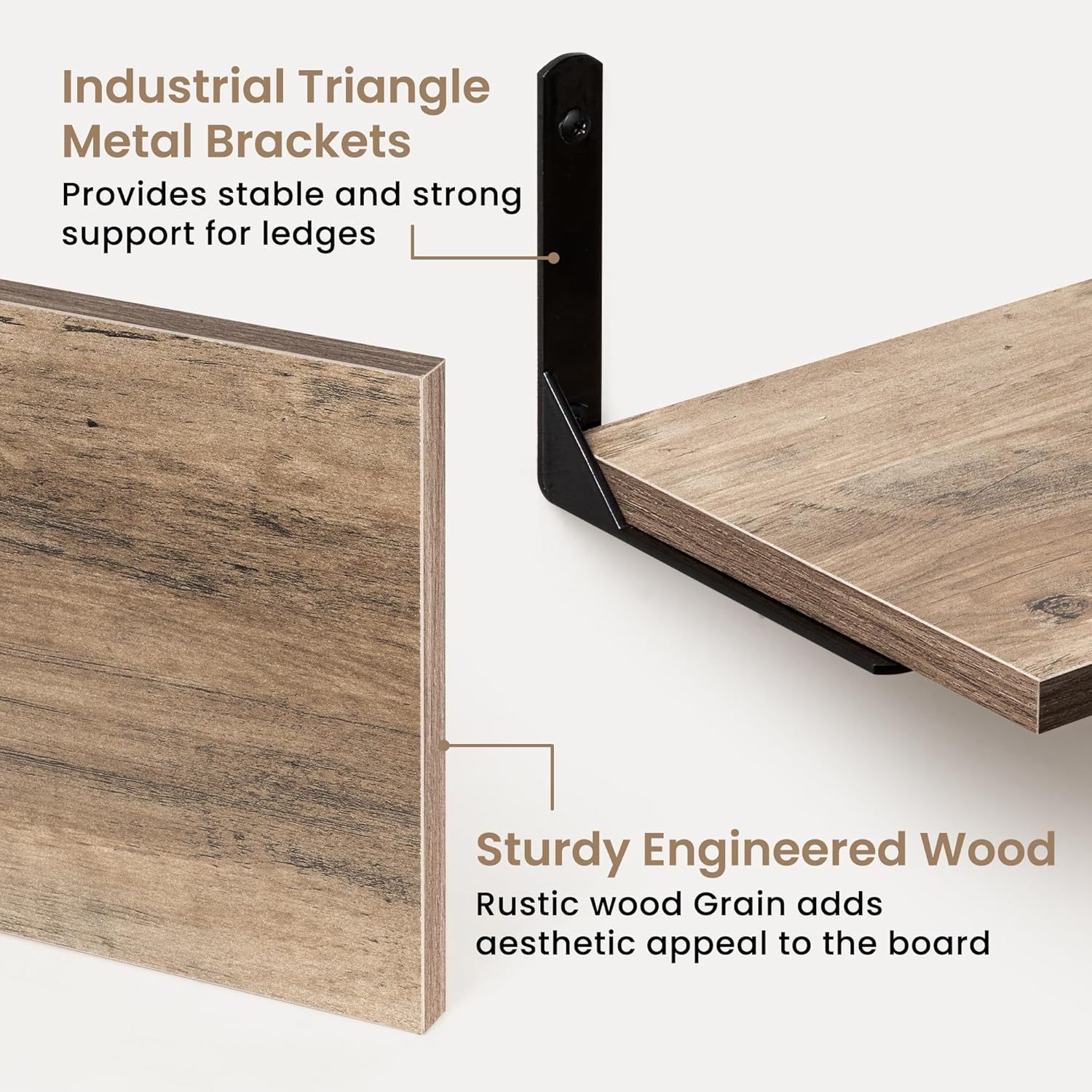 Fun Memories Deep Floating Shelves, 24W x 8D Floating Shelves Set of 2, Wall Mounted Shelf with Metal Brackets, Rustic Wood Wall Shelf for Bathroom, Kitchen and Living Room, Grey
