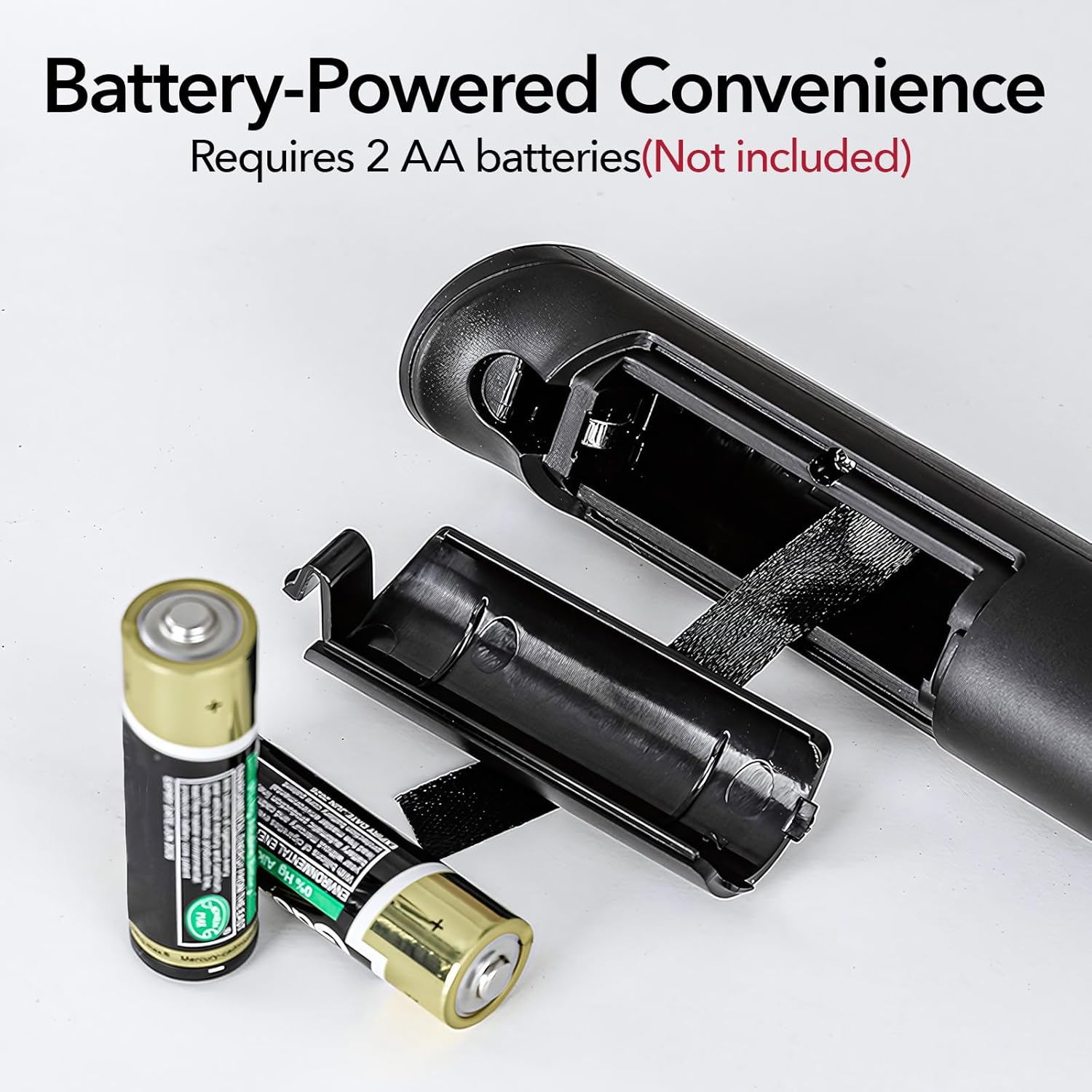 - Battery-Powered Convenience: Runs on 2 AA batteries (not included) for cordless freedom. No more tangled wires or outlet hunting. Quick-change battery compartment