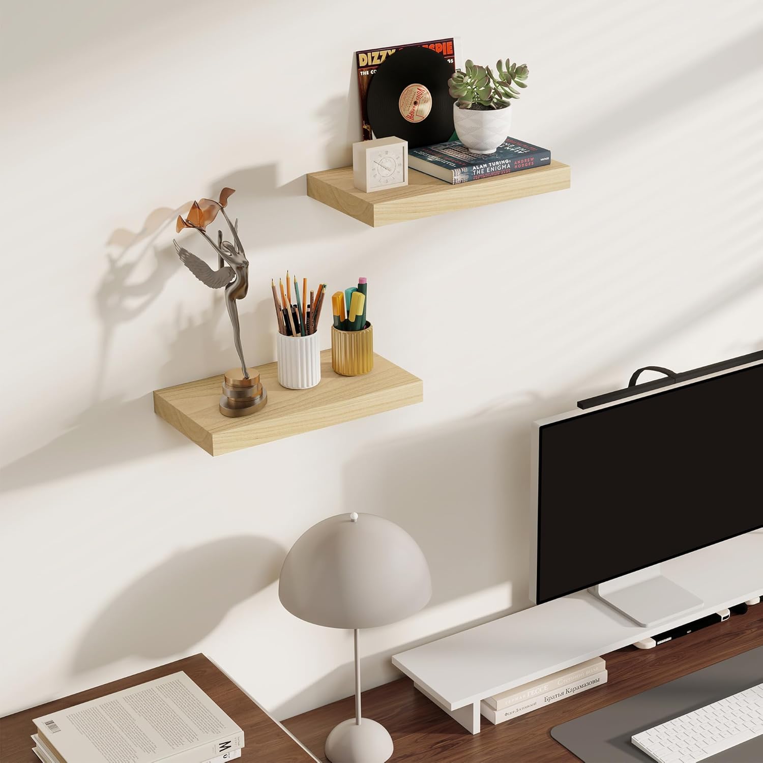 Floating Shelves for Wall, Real Wood Floating Shelf Set of 2, 8 Inch Deep Floating Shelves, Rustic Wood Wall Shelf for Home Decor, Deep Storage Shelves for Bathroom, Kitchen, 16"W x 8"D, Burlywood