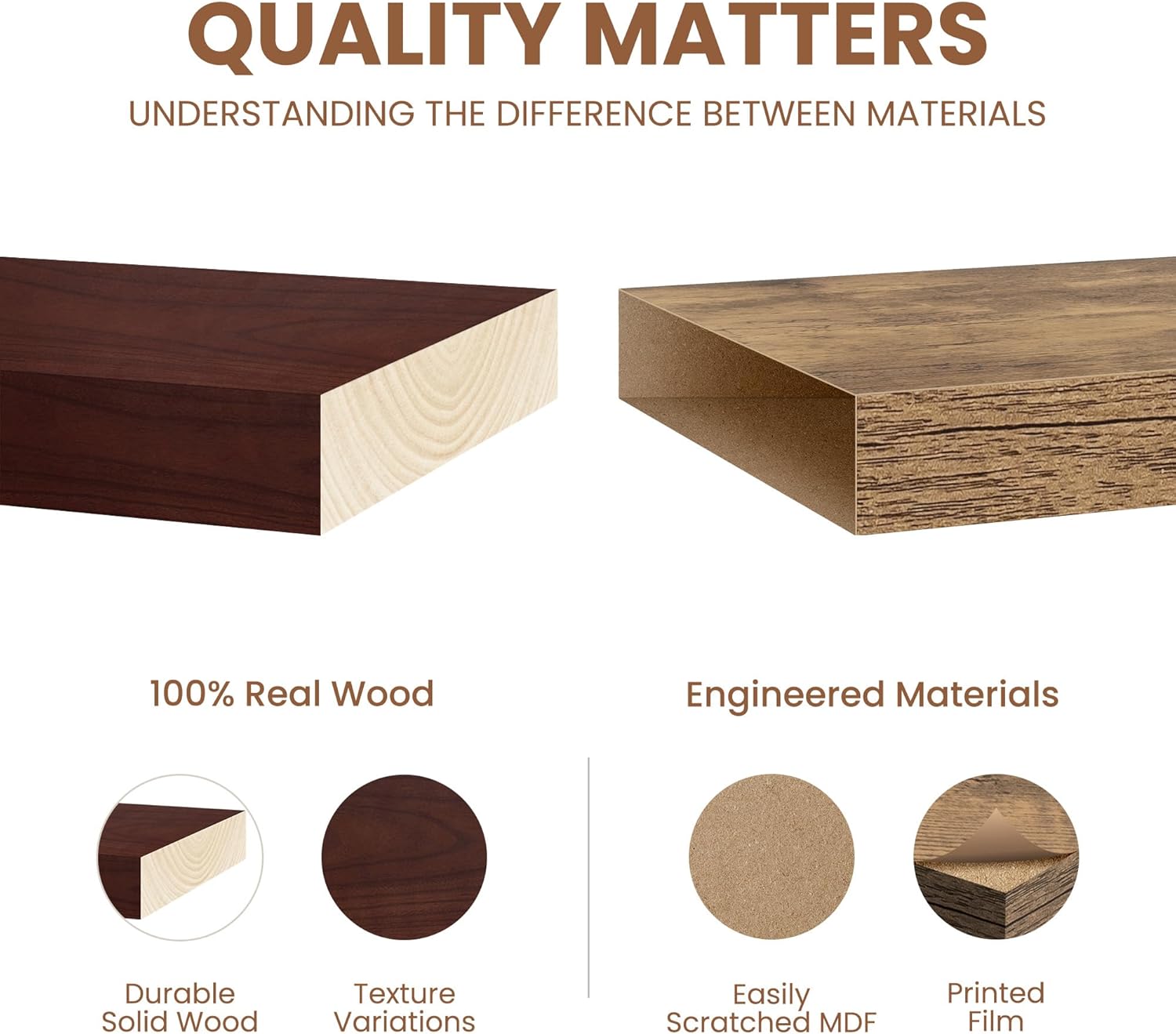 Fun Memories Rustic Floating Shelves for Home Decor, 8 Inch Deep Floating Shelf, Solid Wood Floating Wall Shelves 24 Inch Long, Deep Wall Shelves for Bathroom, Living Room, Walnut Finsh, Set of 2