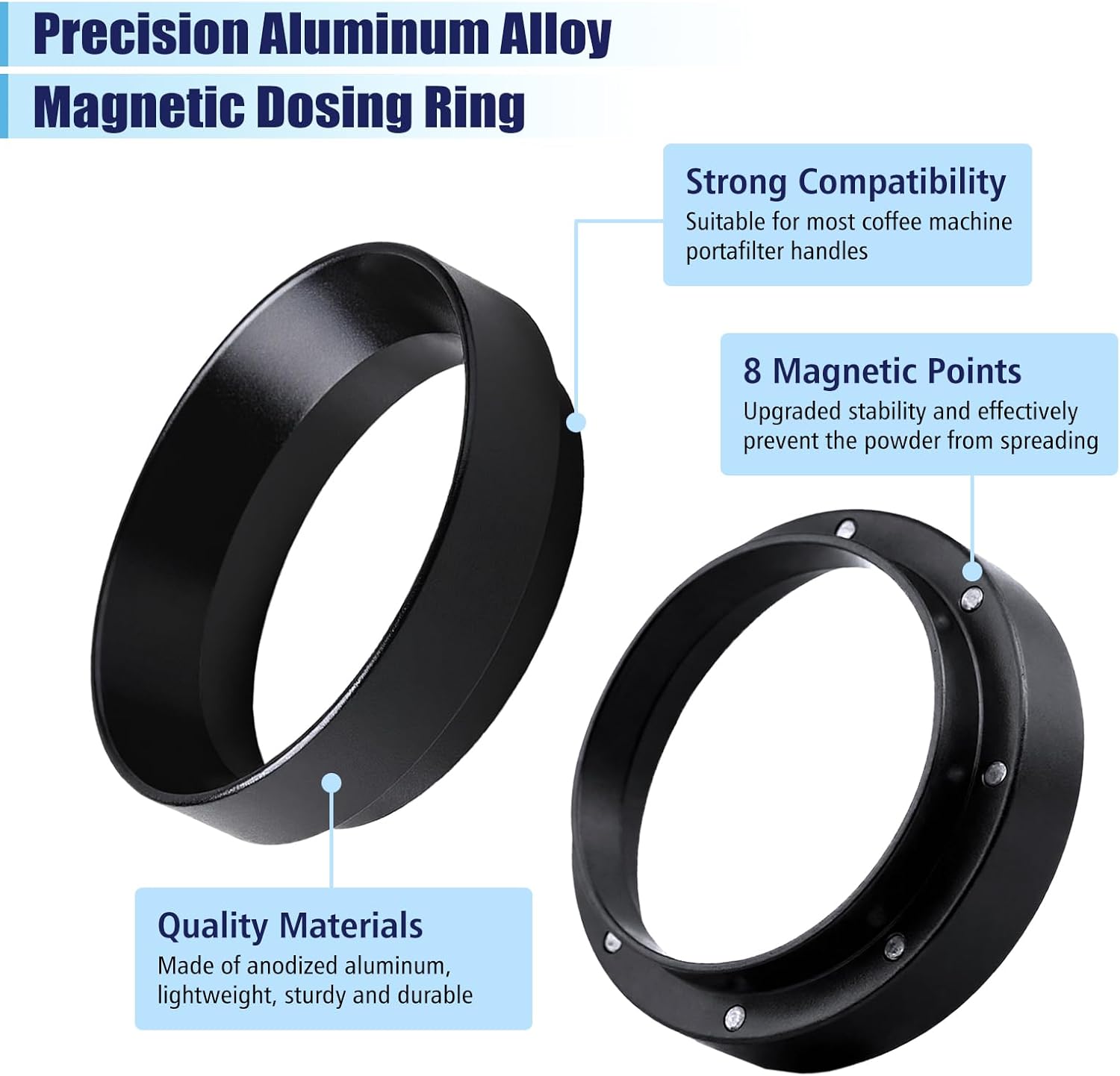 - Complete 2-in-1 Barista Kit: This set includes a 51mm aluminum dosing funnel with 8 magnetic points (prevents coffee spills) + a 1.7mm thick 316 stainless steel puck screen (ensures even extraction).