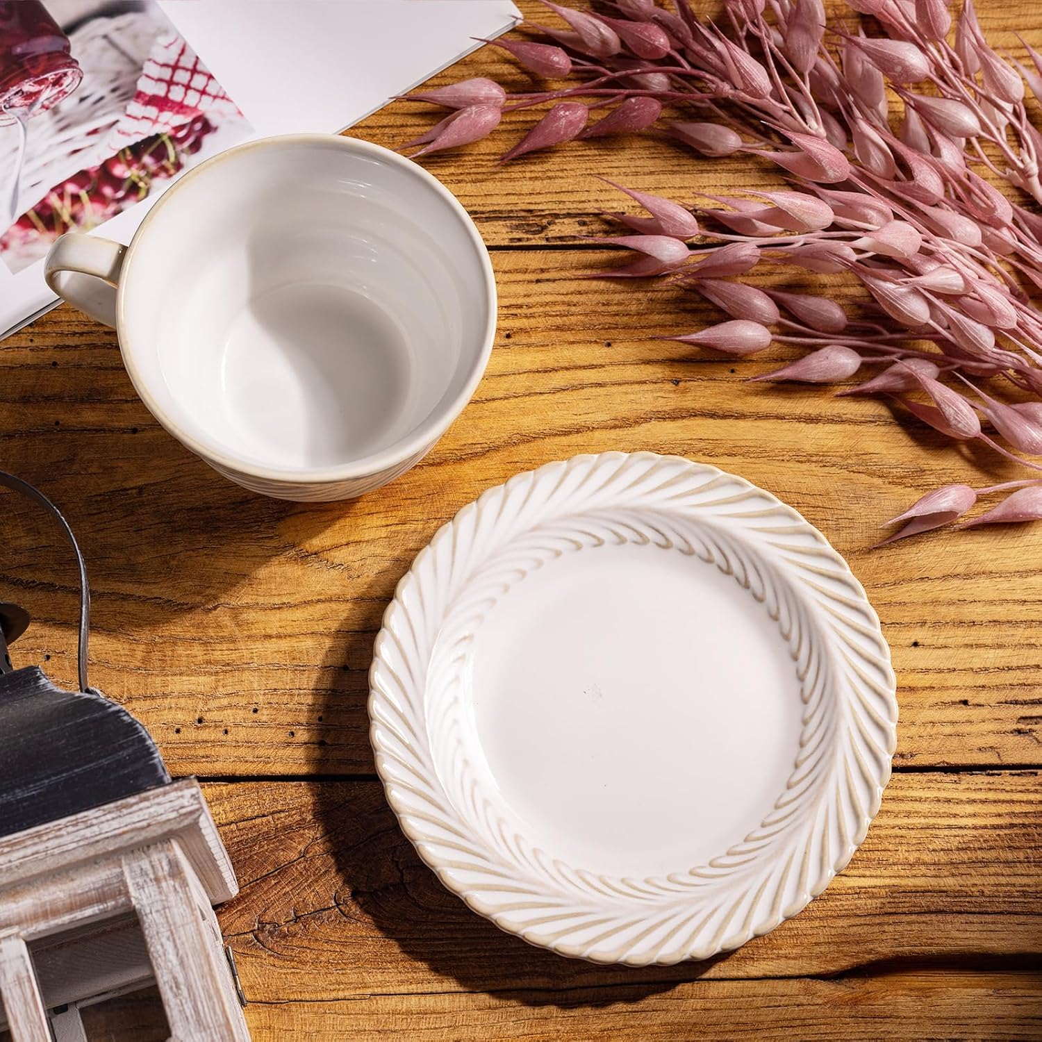 - Classic Cappuccino Cup with Farmhouse Charm: Serve up your morning brew in a timeless cappuccino cup that blends vintage charm with practical design. The wide opening and ergonomic handle enhance the pouring experience, making it easier to achieve consistent foam and latte art patterns. The matching saucer adds rustic beauty while preventing messes.