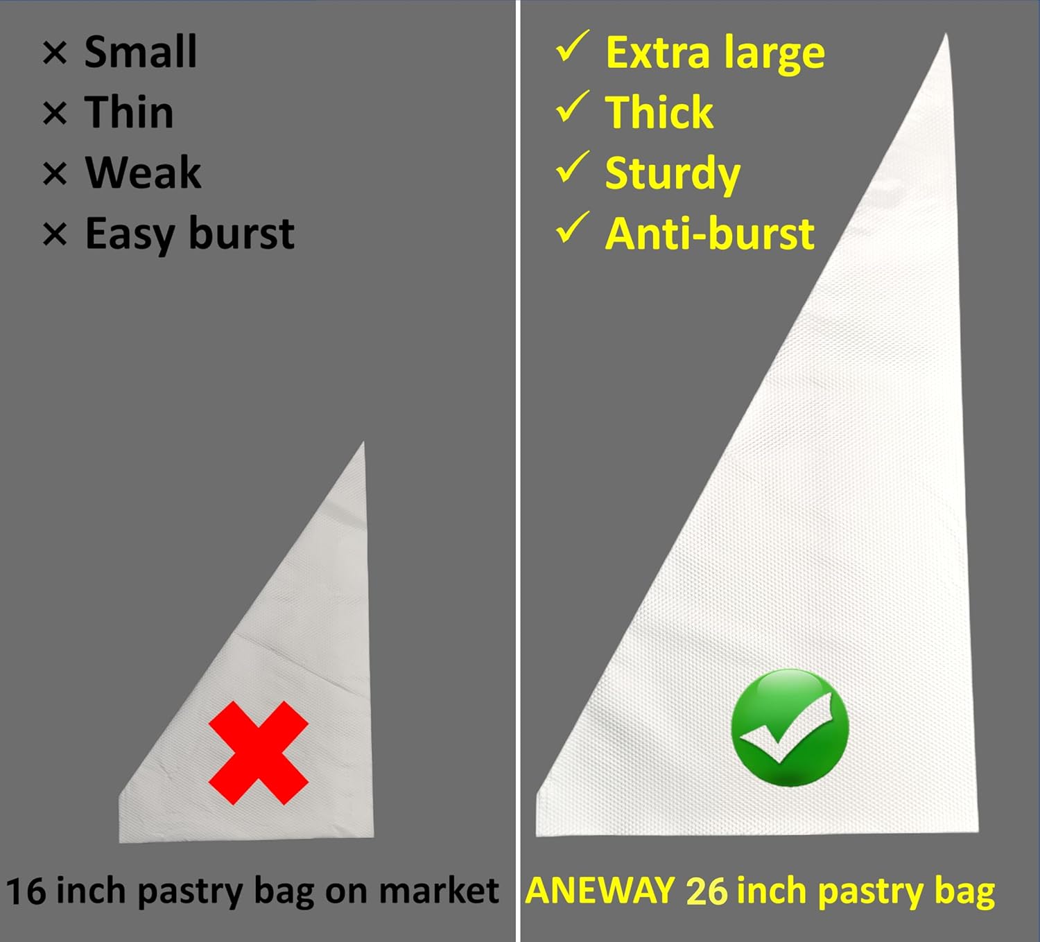 - 【 Disposable Piping Bags】: These disposable pastry icing bags are indeed very convenient. Just toss them away after using, easy and fast. NO worries about cleaning