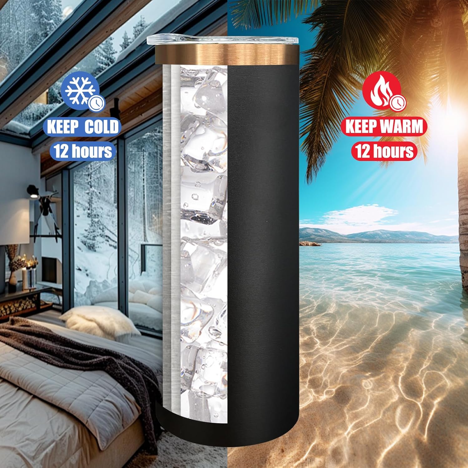 - Double Wall Vacuum Insulated Tumbler: The 20oz straight tumbler is double walled and vacuum insulated; Therefore, the cups ensure that cold beverages keep cold for 12 hours and hot drinks for at least 6 hours; So it will bring you coolness in summer and warmth in winter