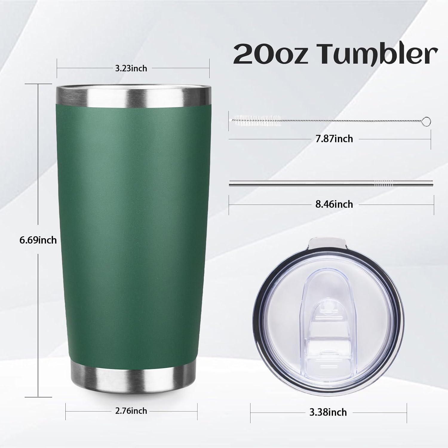 20oz Tumbler Bulk with Lid and Straw, Stainless Steel Double Wall Vacuum Insulated Travel Mug, Powder Coated Coffee Cups for Hot and Cold Drinks,Funny Gifts for Women Men(Dark green,1)