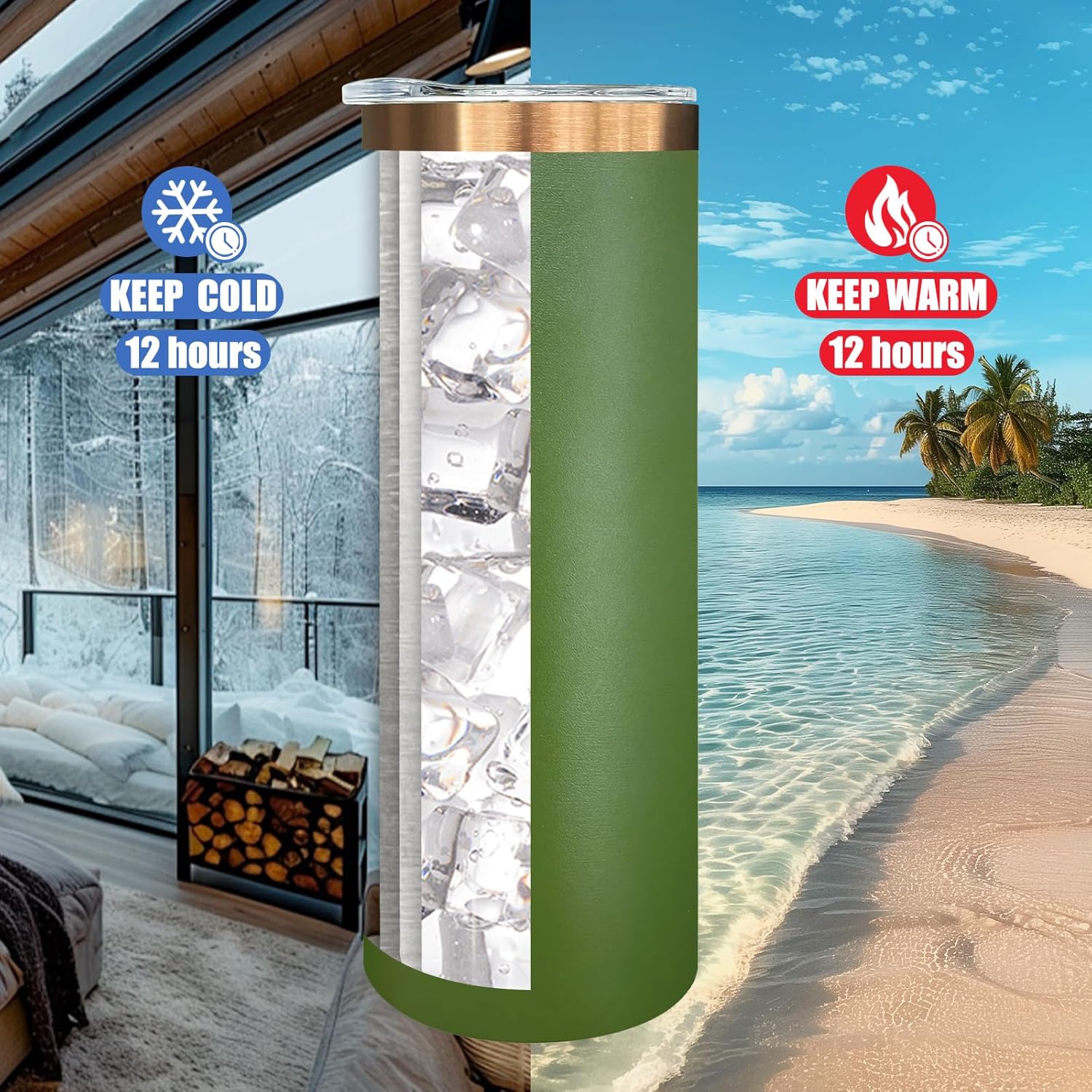 20 oz Skinny Tumblers Bulk, Stainless Steel Insulated Tumbler with Lids and Straws, Slim Double Wall Powder Coated Travel Coffee Mugs, Reusable Cup for Hot and Cold Drinks (Army Green,1 pack)