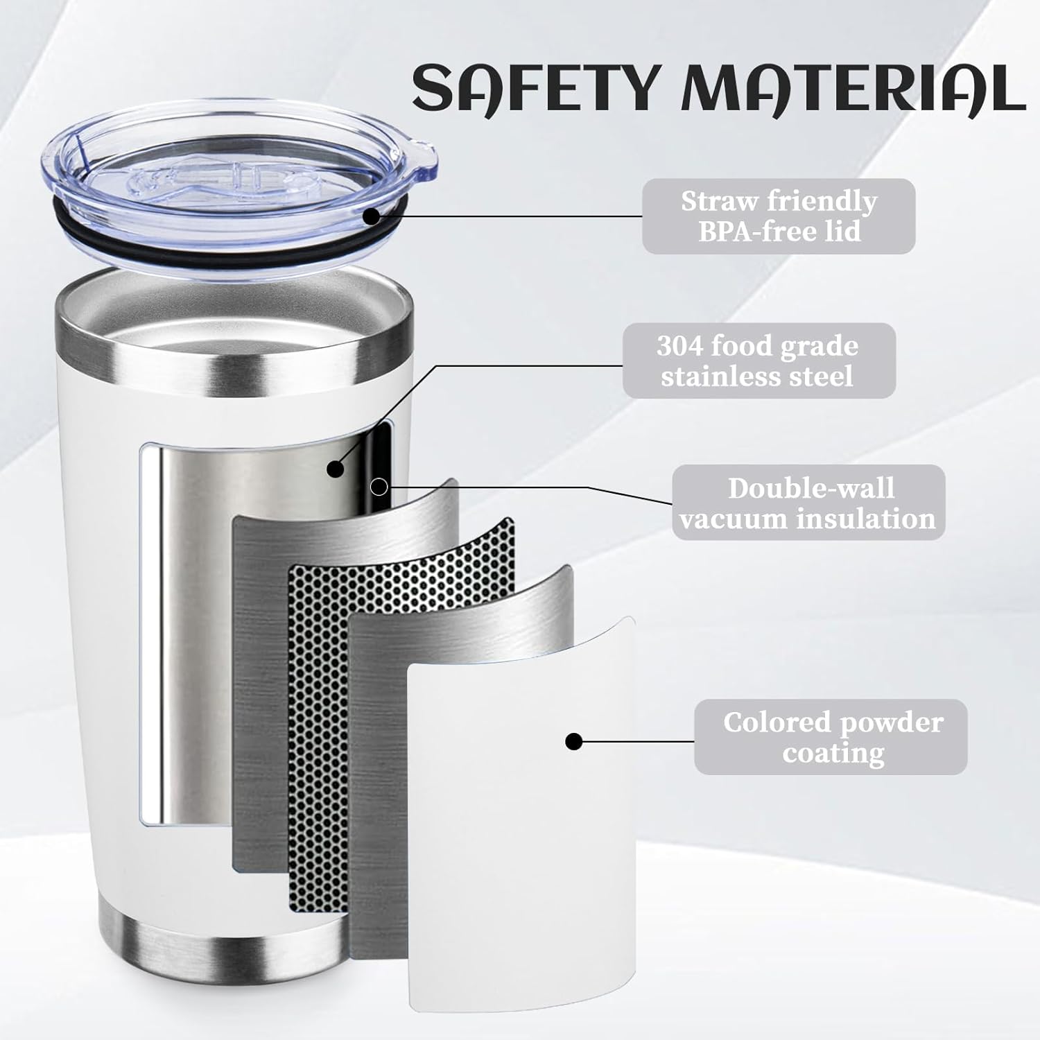 20oz Tumbler Bulk with Lid and Straw, Stainless Steel Double Wall Vacuum Insulated Travel Mug, Powder Coated Coffee Cups for Hot and Cold Drinks,Funny Gifts for Women Men(White,6)