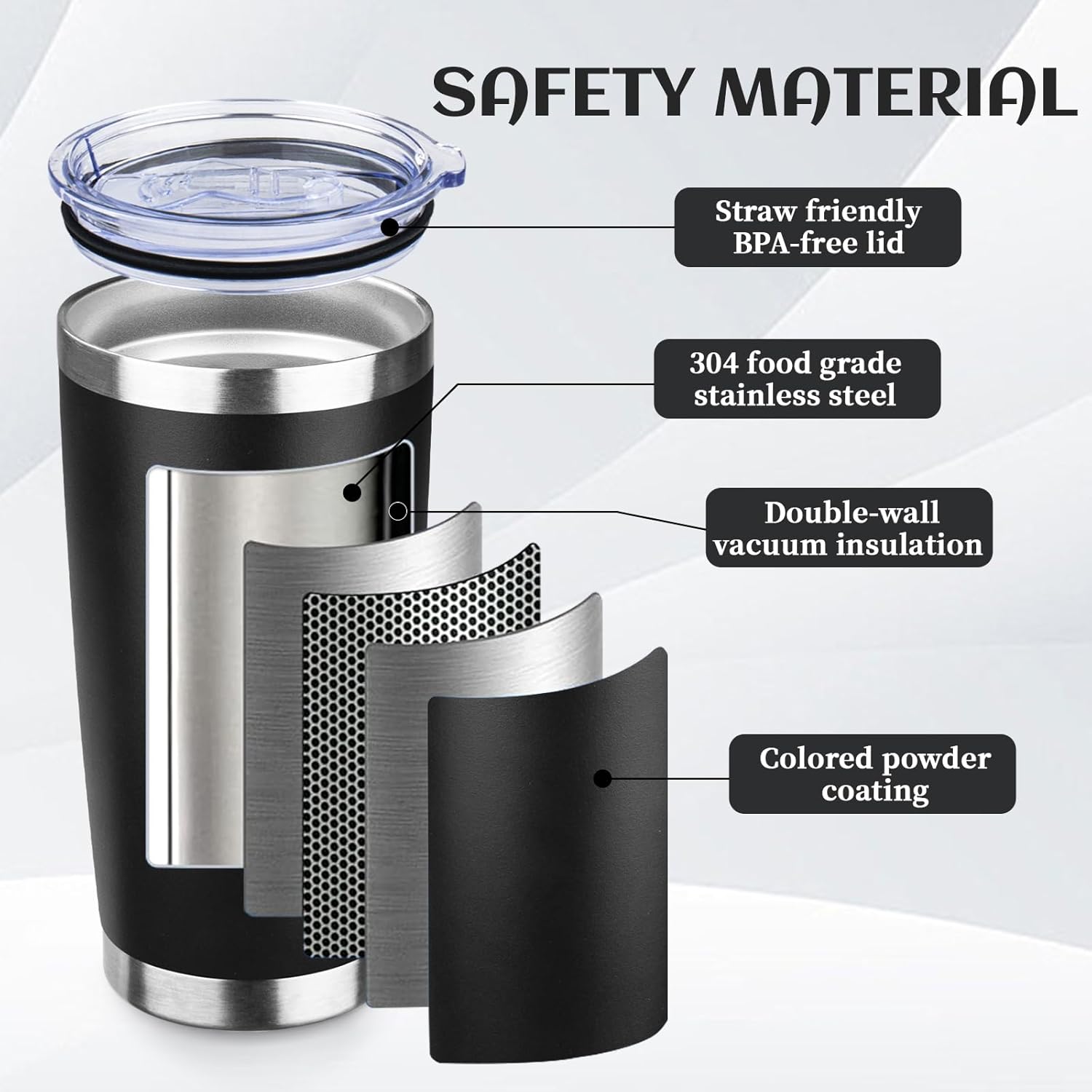 - BPA Free Lid: Stainless steel tumbler set with lid and an opening for drinking, be aware of how hot your coffee is before taking a sip. Under normal temperature, the insulated coffee cup keep your water hot for three hours and cold for nine hours