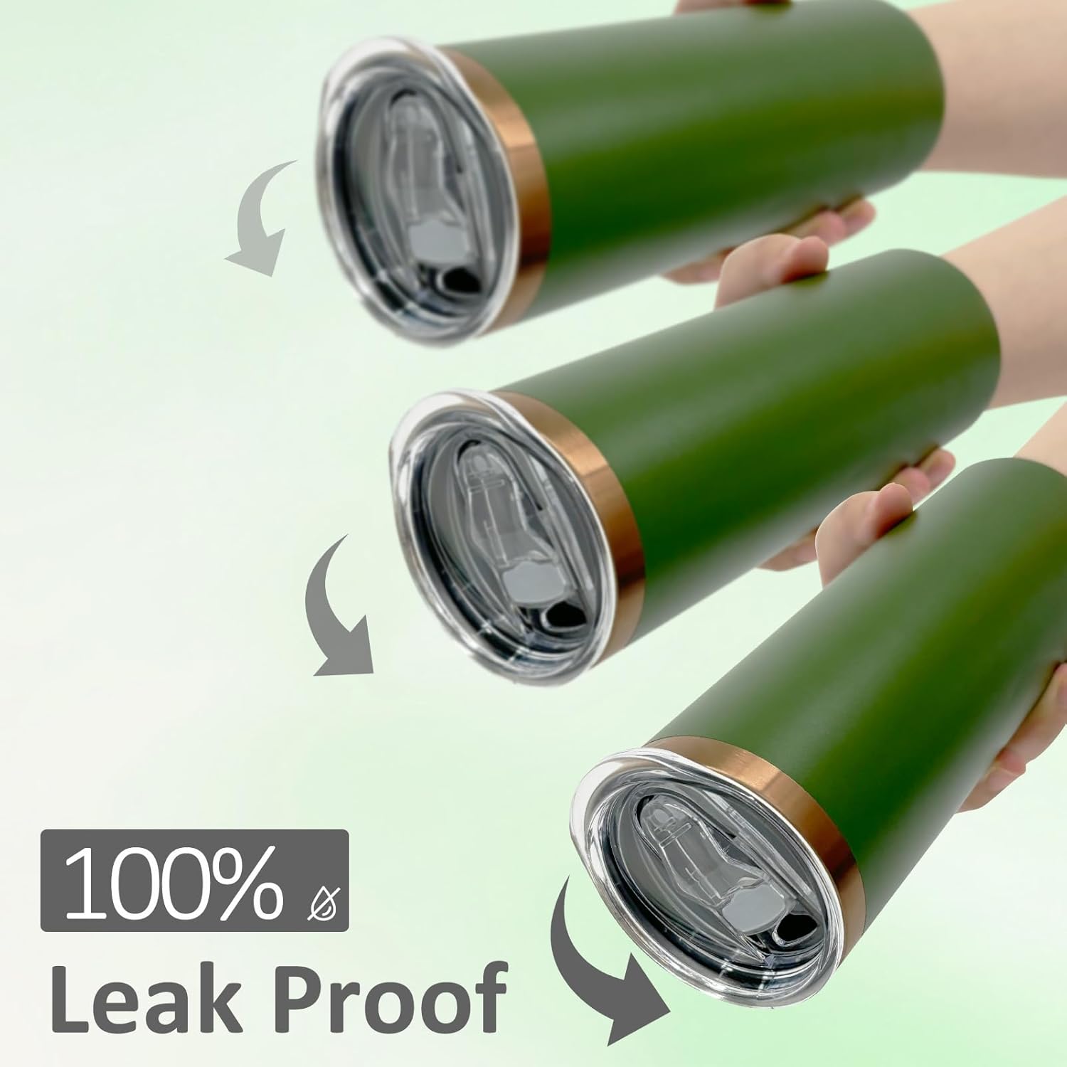 20 oz Skinny Tumblers Bulk 8 Pack, Stainless Steel Insulated Tumbler with Lids and Straws, Slim Double Wall Powder Coated Travel Coffee Mug Reusable Cup for Hot Cold Drinks (Army Green,8 pack)
