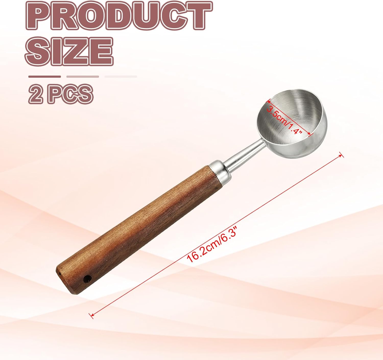uxcell 2pcs Coffee Measuring Spoon, 4" x 0.7" 15ml Stainless Steel Coffee Scoop with Wood Handle for Ground Coffee or Loose Leaf Tea Silver