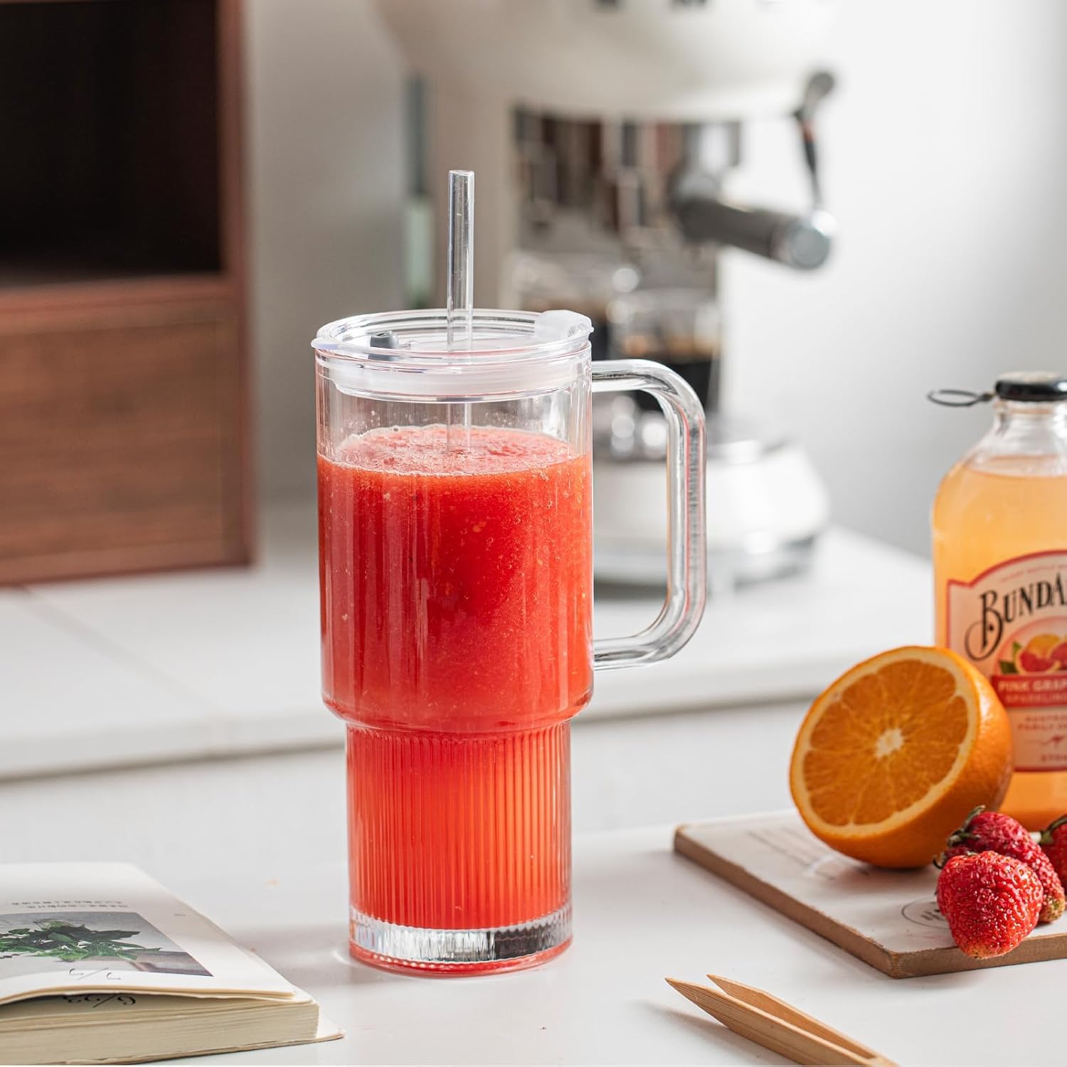 - 【Two-Texture Design, Twice the Functionality】 This tumbler with lid features a ribbed-textured lower section that enhances grip and helps prevent slips caused by condensation, while the smooth upper body beautifully showcases vibrant drink layers. Perfect for tea, iced coffee, or layered cocktails.