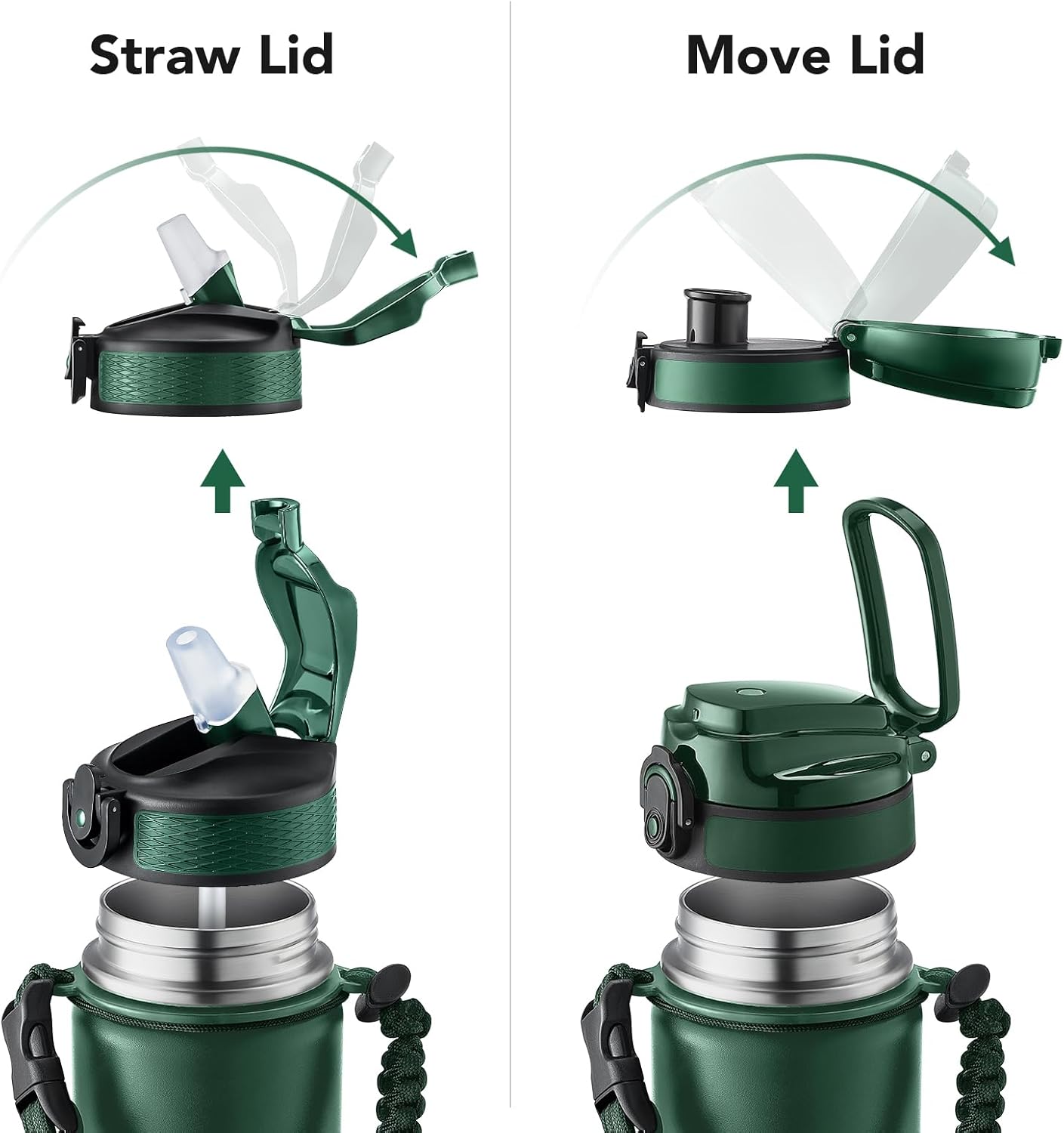 - Insulated water bottle 24 oz: 24 oz insulated water bottle has a matte finish and comes with 2 lids (Lid with Straw/No Straw) and a Paracord handle for easy portability; Its wide mouth makes it easy to fill, pour, and clean, and the leak-proof cap ensures worry transport.