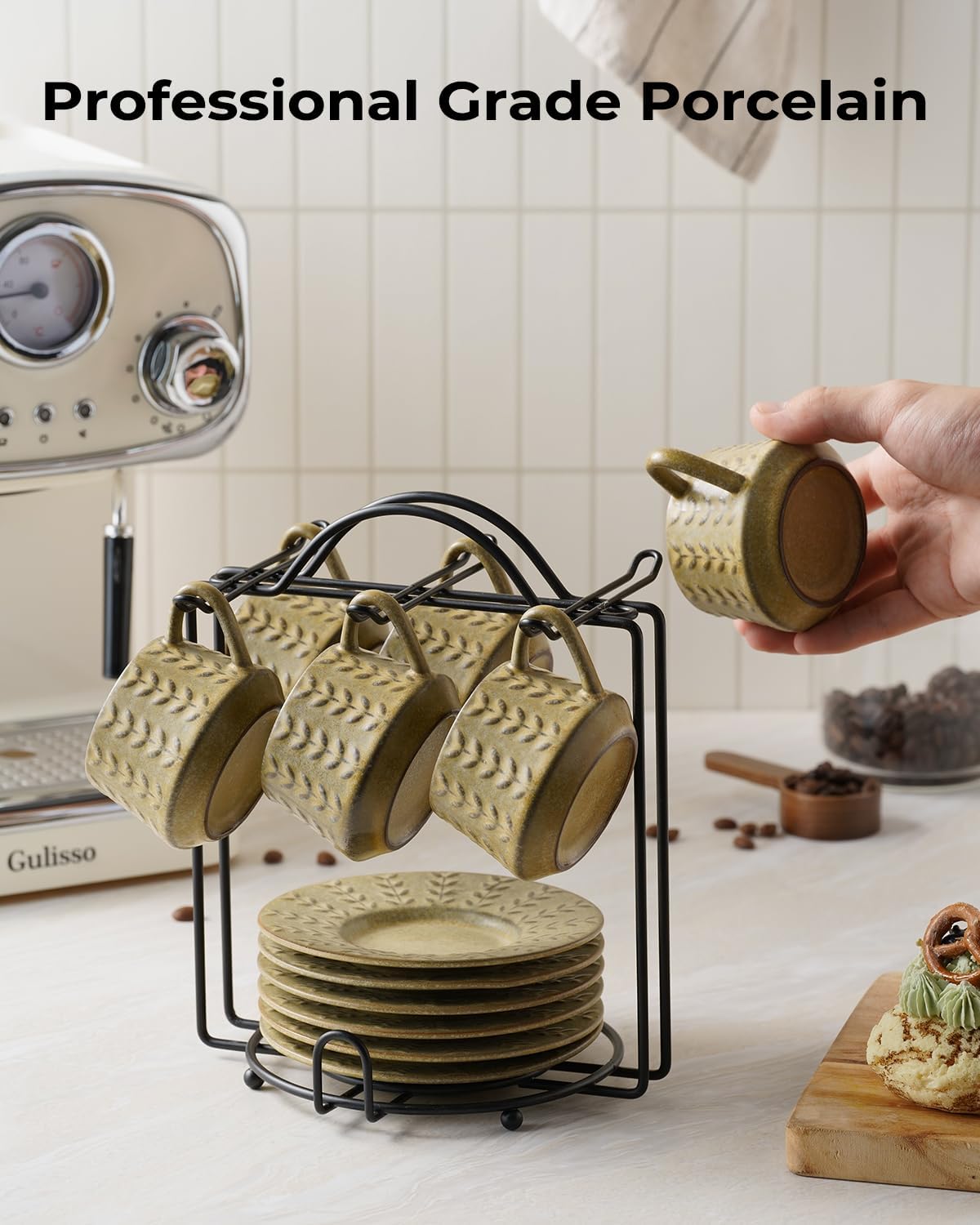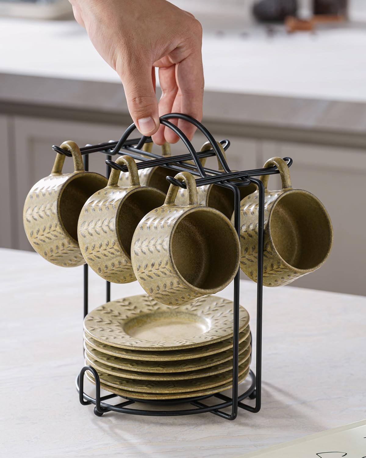 - Complete Espresso Set: Our espresso cup set includes six beautifully crafted cups, six saucers, and a stylish iron rack that keeps everything neatly organized for easy storage and enjoying a stylish espresso experience