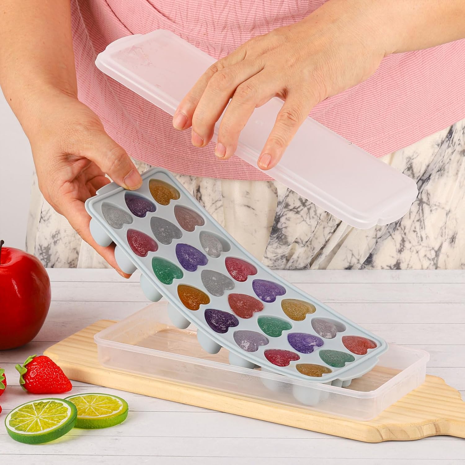Heart Shaped Ice Cube Trays with Lid and Bins, Silicone Chocolate Mold, Easy Release Ice Trays, 24-Cavity Heart Molds for Ice Cubes, Gelatine, Baking and Candy