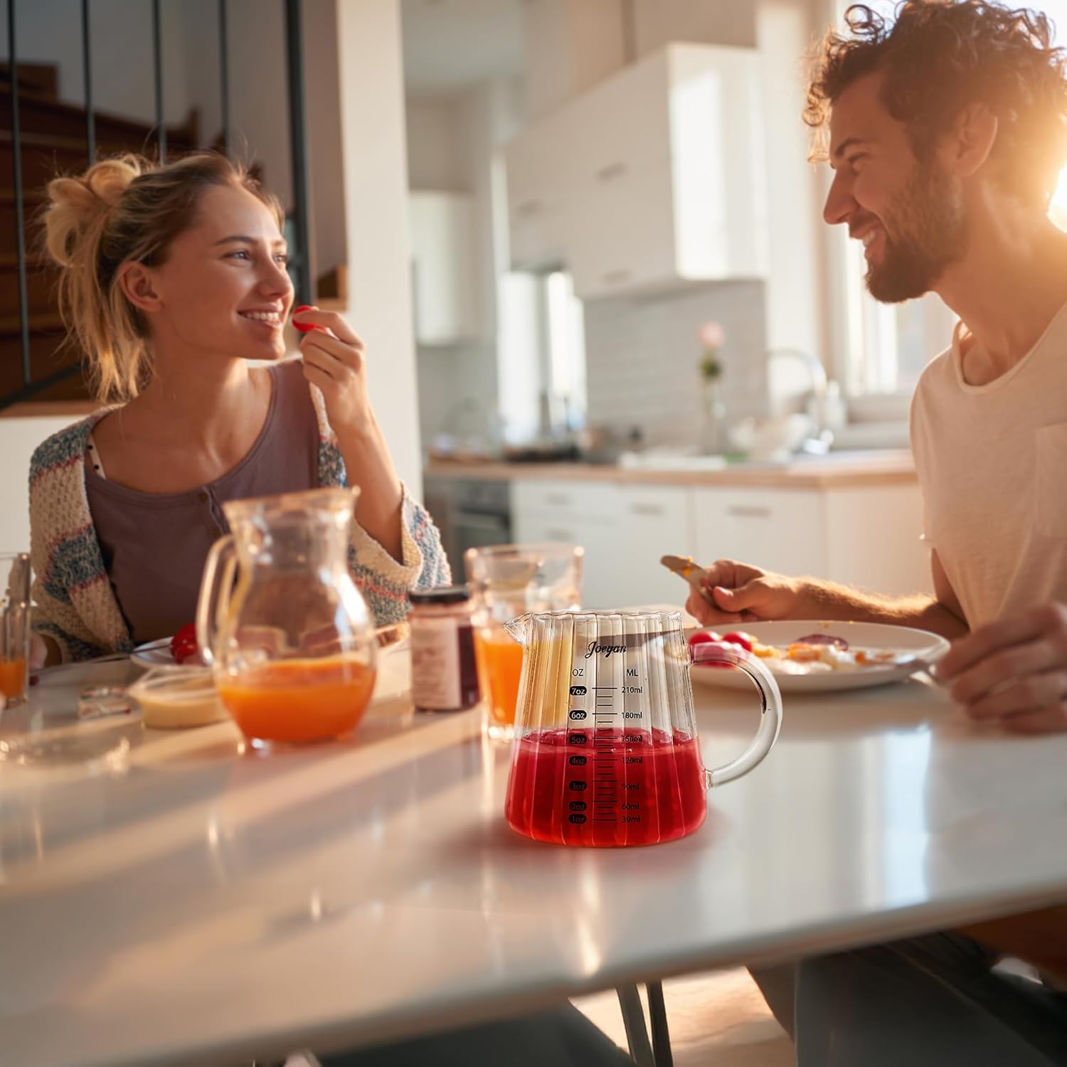 - High Quality Material: Our glass measuring jug made of high borosilicate material, lightweight, anti-corrosion, heating and refrigeration acceptable. And safer than any plastic measuring jug.