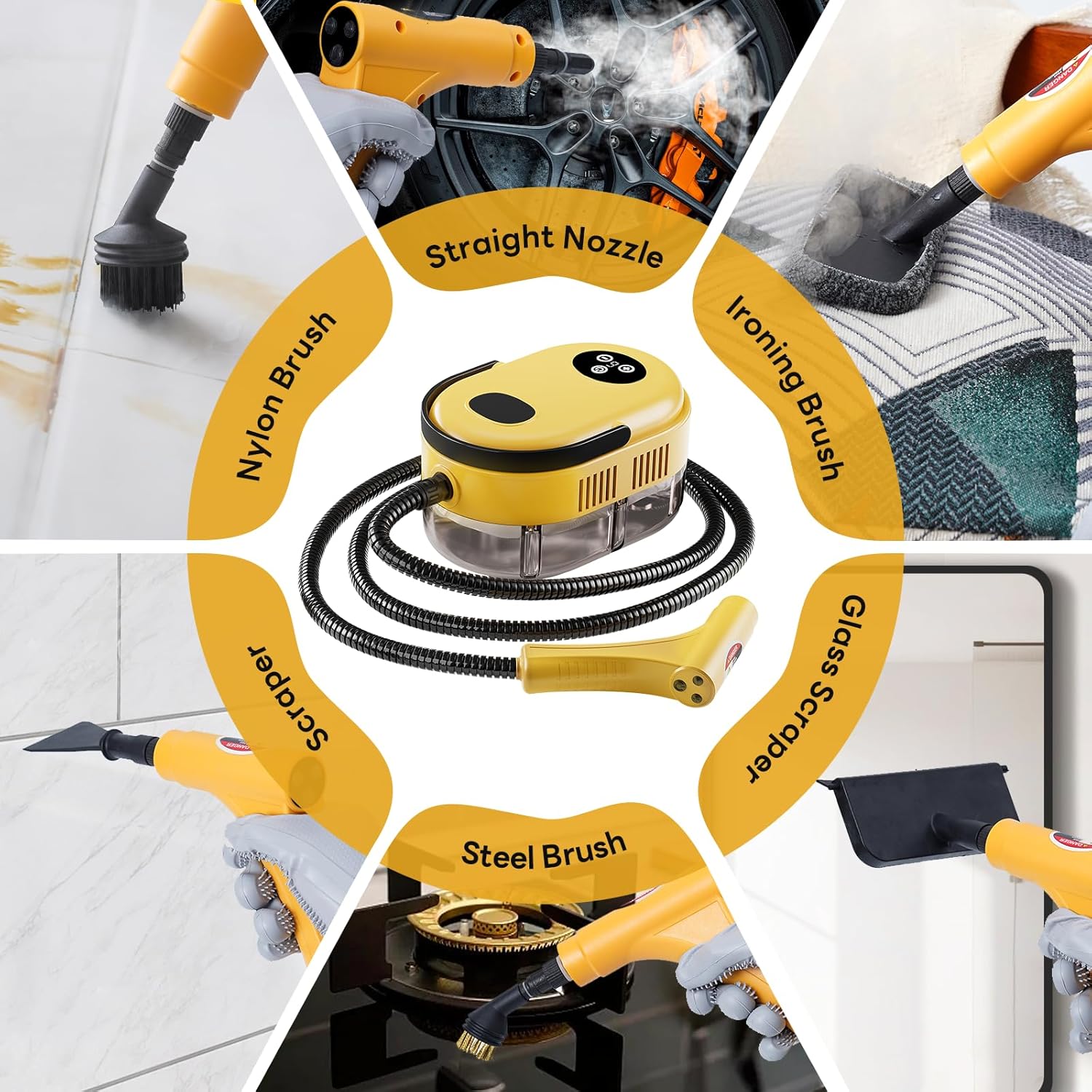 - Includes 18 Accessories and Storage bag: Equipped with nylon brushes, brass brushes, angled nozzles, glass brushes, scrapers, gloves, rags, and more. Also comes with a matching storage bag, making it convenient for storing and organizing each cleaning session.