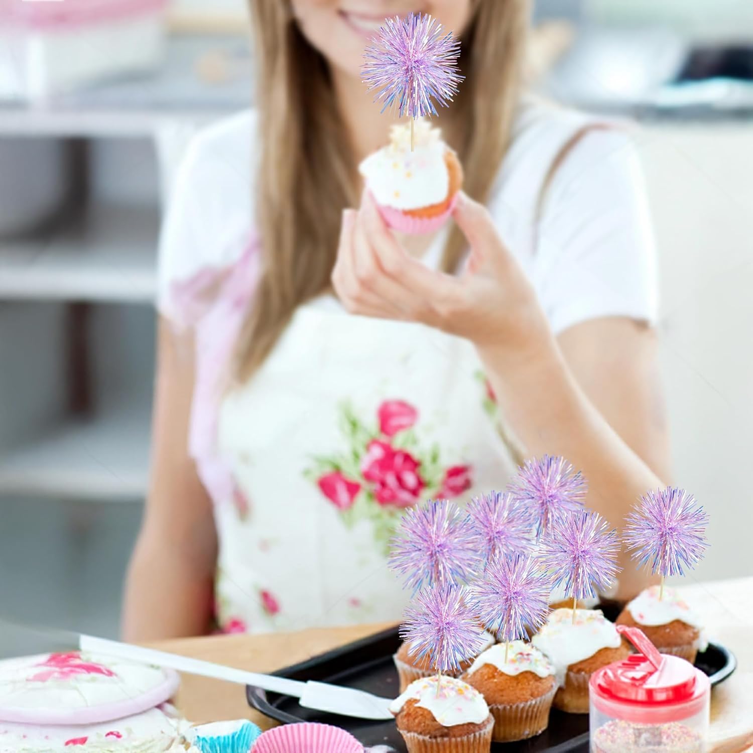 Gyufise 30Pcs Foil Firework Cupcake Toppers Sparkle Tinsel Cake Toppers Tinsel Drink Cake Decoration Cocktail Picks for Birthday Wedding Graduation Party Supplies Laser Purple