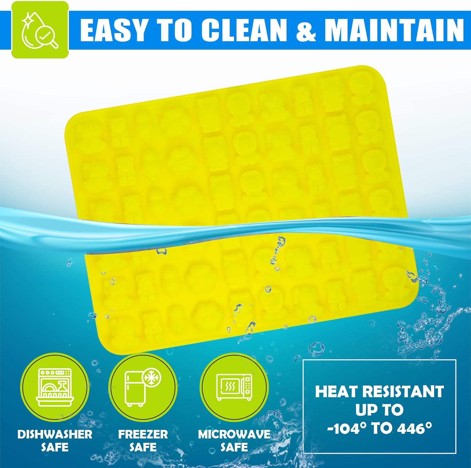 - 【High-quality food-grade silicone material】: Crafted from carefully selected food-grade platinum silicone, BPA free, no odor, and certified by LFGB, the silicone molds for food ensure safety and quality. They withstand temperatures from -22°F to 446°F that are suitable for microwave, oven, refrigerator. It can be used to make gummies, chocolates, ice cubes, jellies, hard candies, pet treats, and even wax melts.