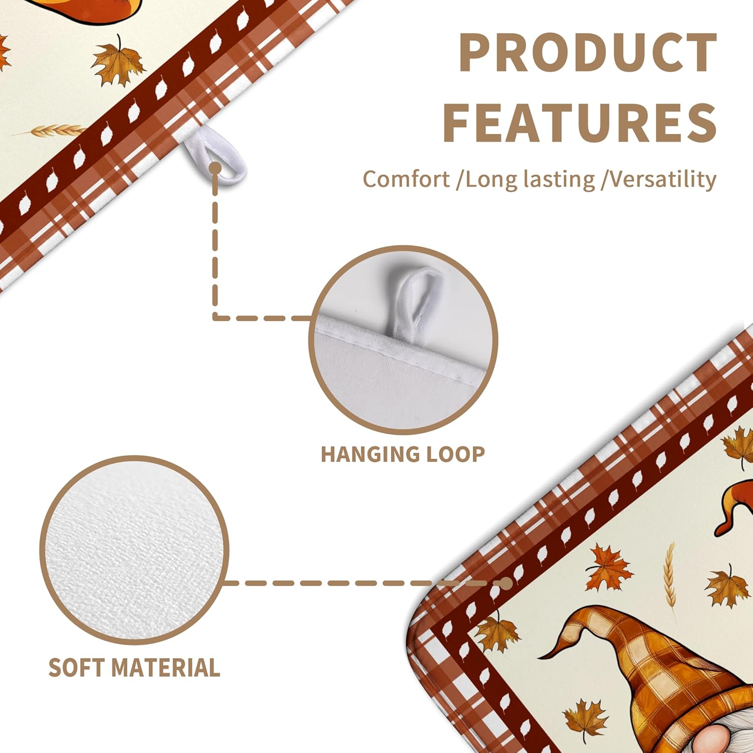 - [Material]: The surface of this Fall Gnomes kitchen drying mat is made of absorbent microfiber and the middle is made of composite sponge. Fall Pumpkin Gnome Large microfiber dish drying mat can be easily rolled up and folded for storage or hanging.