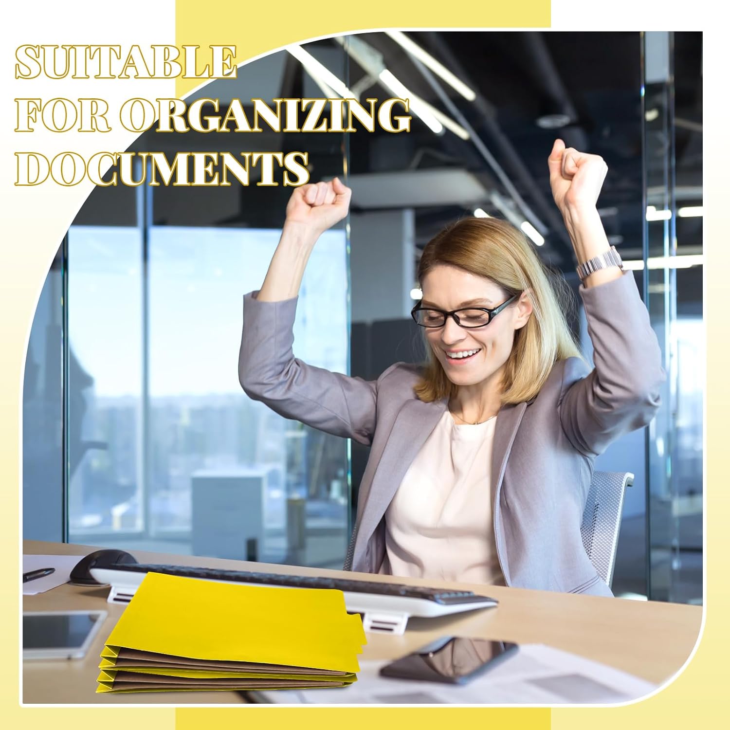 12 Pcs Classification Folders Letter Size, Back to School Supply for Teacher, Student, 2 Pocket Dividers Pressboard File Folder Bulk with 2 Fasteners, 2 in Expanding File Organizer (Yellow)