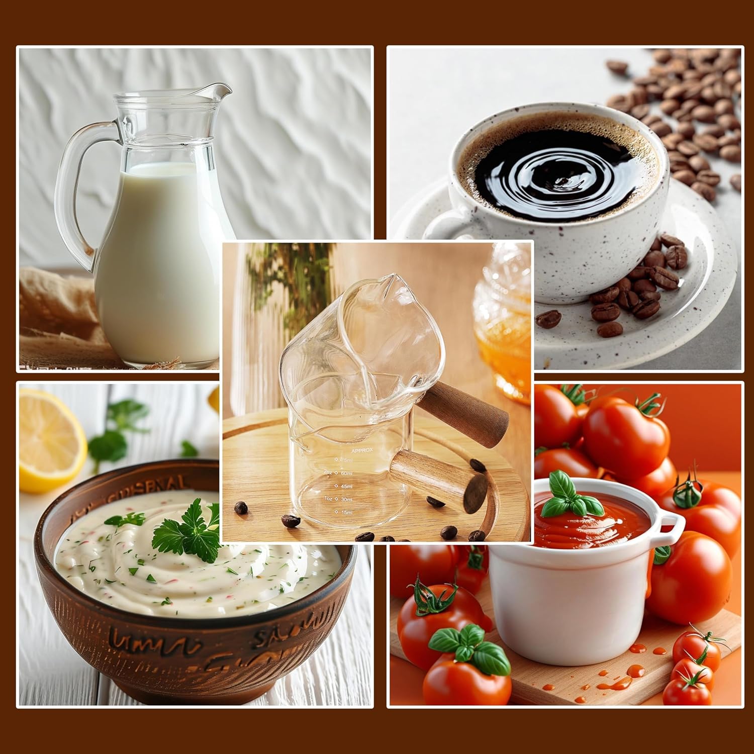 - Ergonomic & Heat-Resistant Wooden Handle: The Measuring Cups' thoughtfully designed wooden handle ensures a secure, comfortable, and heat-resistant grip, allowing you to handle hot espresso shots without burning your hands. The ergonomic design also provides added control when pouring, making it easier to enjoy your coffee without spills or accidents