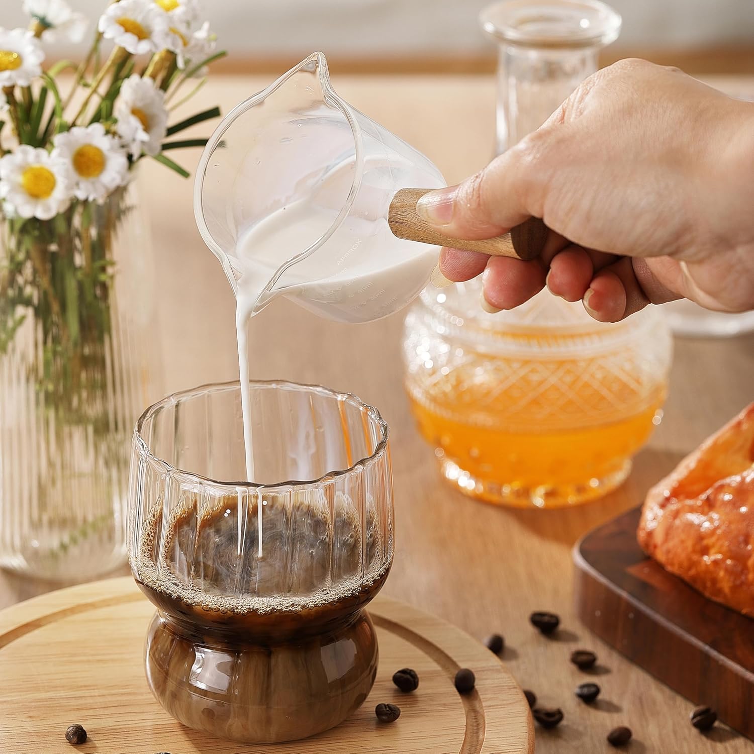 - Elegant & Durable Construction: Crafted from premium clear glass, these espresso shot cups are designed for long-lasting durability and a stylish look. The transparent glass allows you to view the richness of your espresso shots, enhancing your coffee experience. The wooden handle adds a touch of sophistication, offering both beauty and strength for daily use