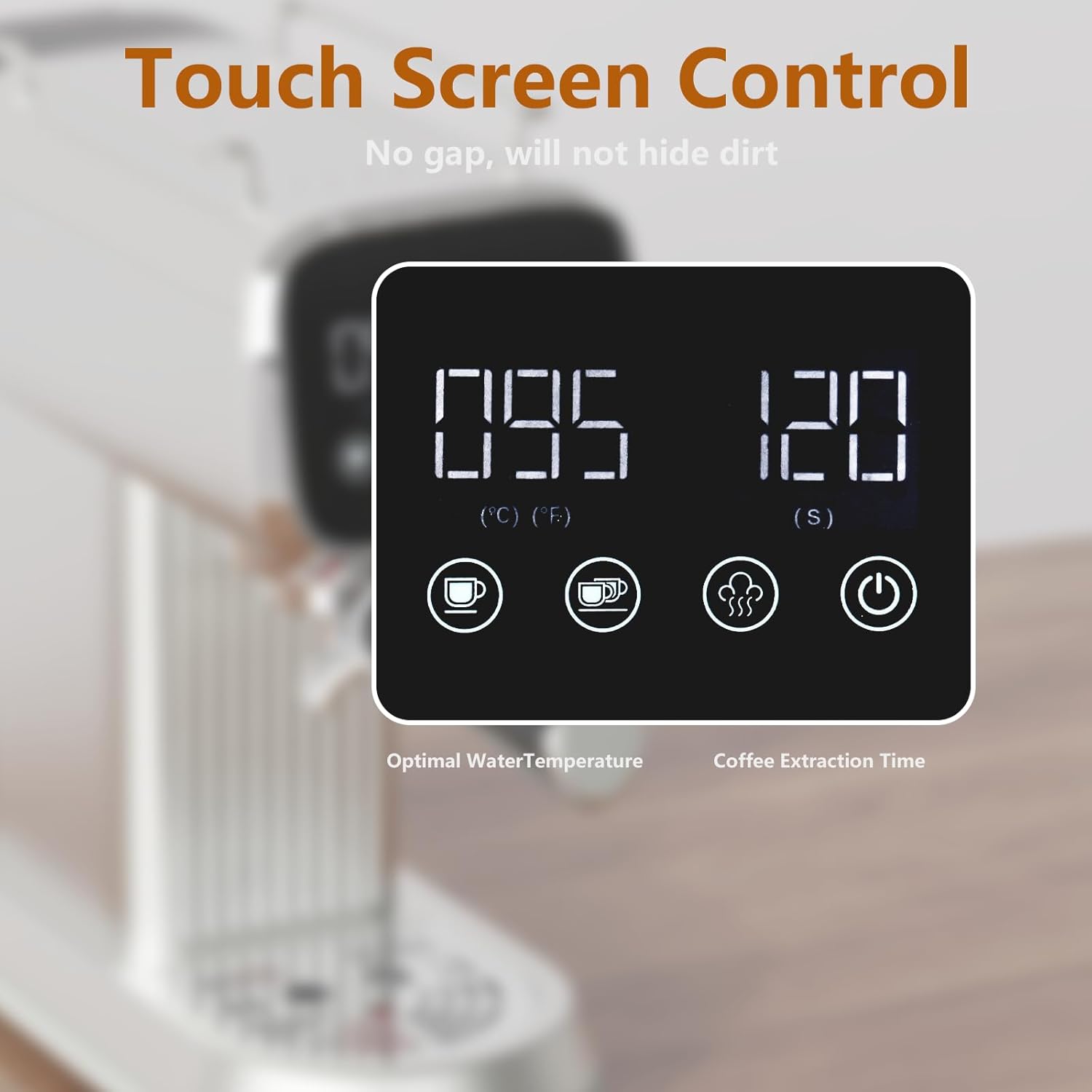 - Custom Temperature(top to 239℉):The espresso machines have a LED touch screen to display the temperature that ensure perfect brewing and steaming effects, You can monitor the temperature to make better Americano or espresso you want