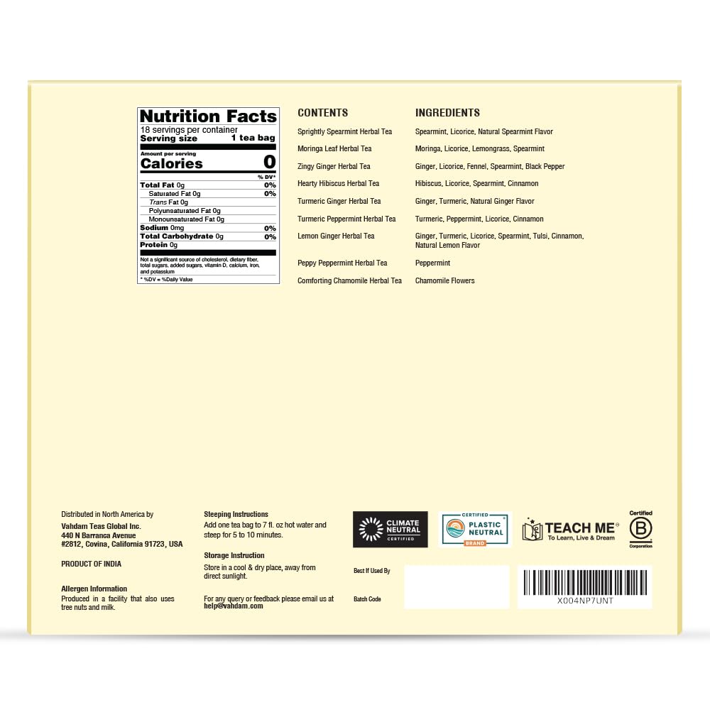 VAHDAM, Assorted Herbal Tea Sampler (18 Tea Bags, 9 Flavors) Caffeine-Free, Non-GMO | Double Infusion, Individually Enveloped Tea Bags | Herbal Tea Assortment