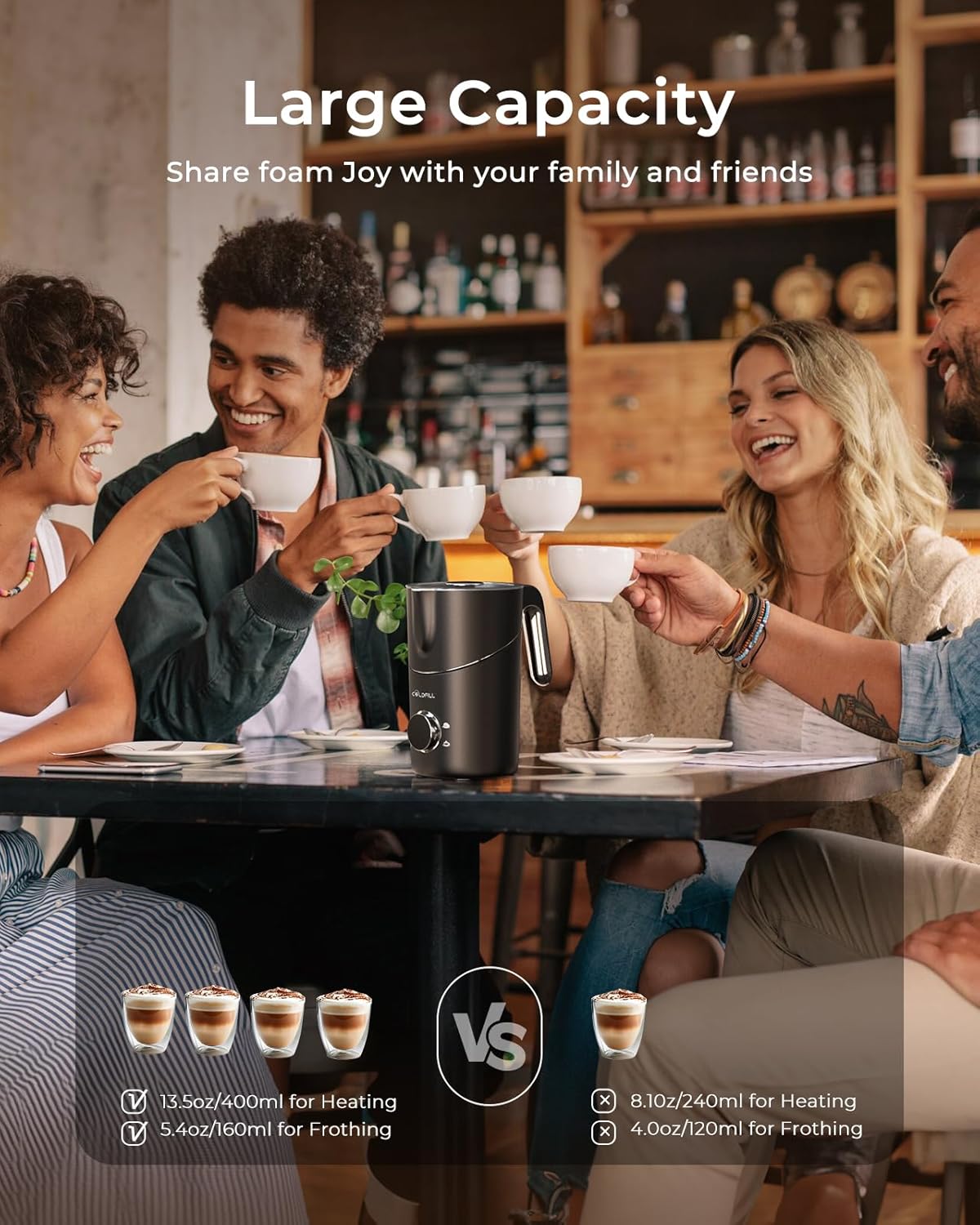 - 【8-in-1 Milk Frother for Coffee & Hot Chocolate】This 8-in-1 electric milk frother for coffee and hot chocolate creates both cold and hot foam, perfect for dairy and plant-based milks like almond, oat, soy, or nut milk (fat content ≥ 3%). Enjoy rich foam for matcha lattes, thick or thin foam for cappuccinos. With premium COLDFILL technology, effortlessly craft barista-style drinks and latte art every time, making it a great addition to any kitchen as a coffee frother and hot chocolate machine.