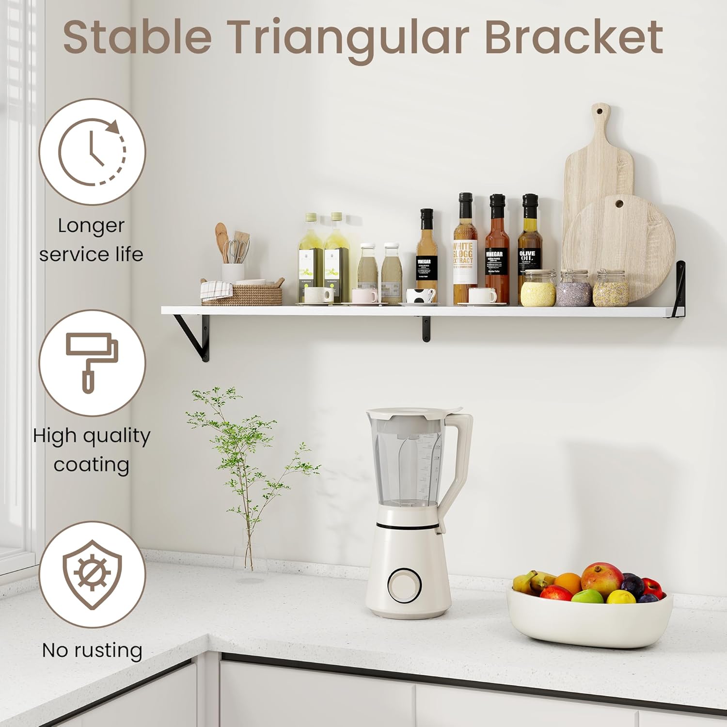 - Wide Application: These floating shelves are perfect for any room in your home. Use them in the living room to display artwork, in the kitchen for spices and utensils, in the bathroom for toiletries, or in the bedroom for books and accessories. Their versatility ensures they meet your storage and decor needs wherever you place them.