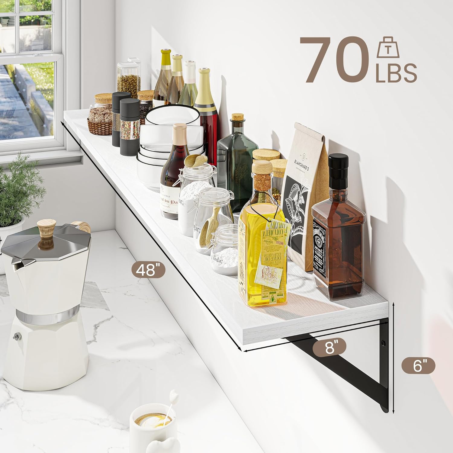 - Large with more Storage: With dimensions of 48 W x 8 D inches, these wall shelves offer ample space for storage and display. Whether you're showcasing your favorite books, photos, or decorative items, you'll find plenty of room to keep your essentials organized and within reach.