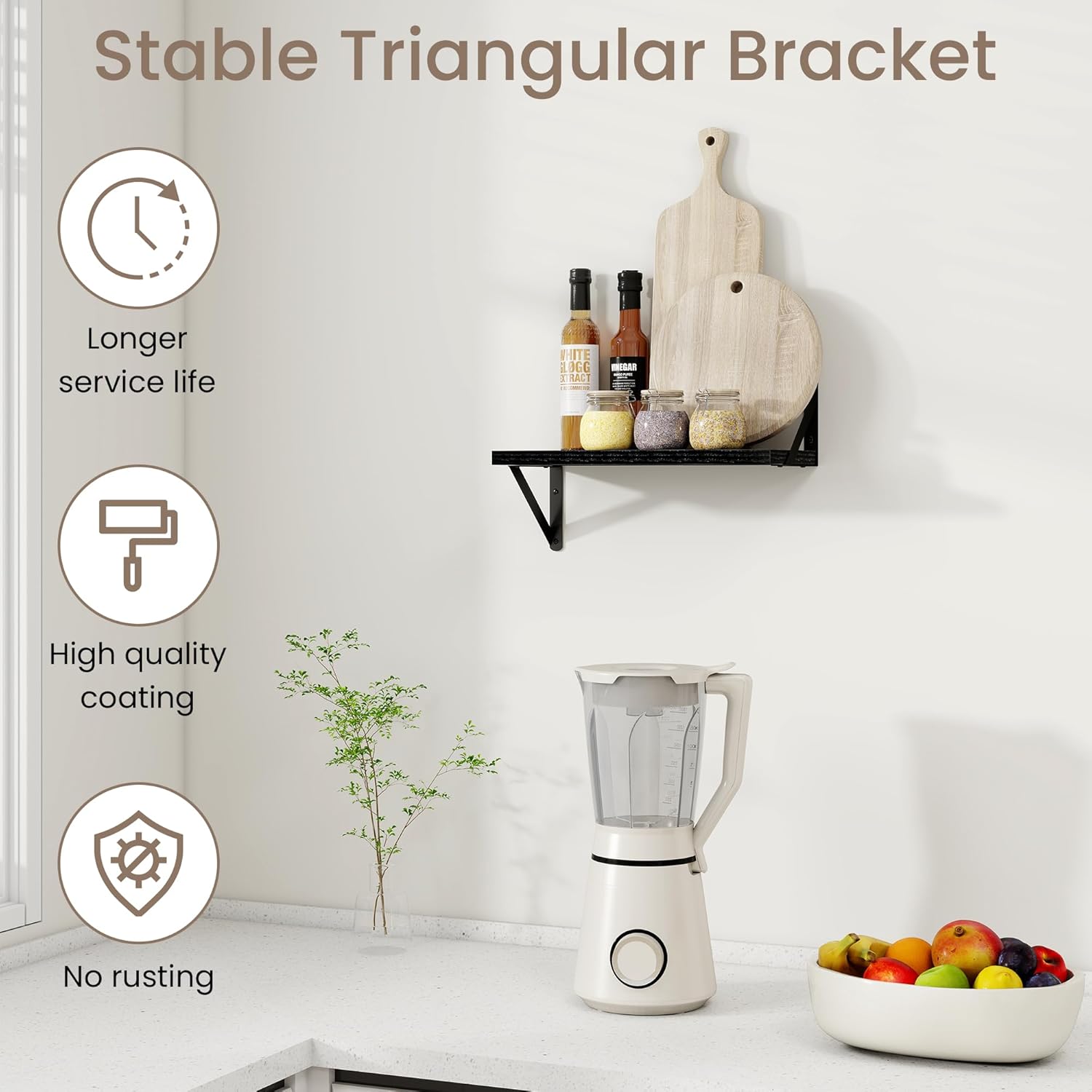 - Sturdy & Durable: These floating shelves are crafted from sturdy particleboard and metal brackets, designed to withstand the test of time. Their robust construction ensures they can support a variety of items without sagging or warping, making them a reliable addition to any home.