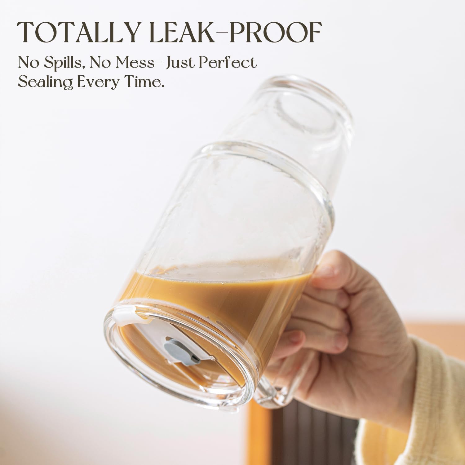 KEMORELA Glass Cups with Lids and Straws 2PCS, 24oz Clear Tumblers with Handle, Reusable Drinking Glasses for Iced Coffee, Tea, Water, Leak Proof Lid, Dishwasher Safe