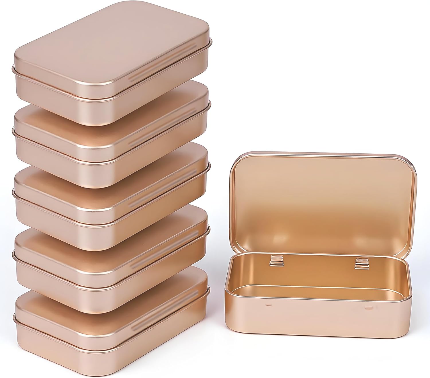 Small Metal Box With Lid-Cookie Tins Metal Tins With Lids Lens Wipes Storage Container Mini Portable Box,Empty Hinged Tin,For Organize Mint Candy Jar,Sewing (Rose Gold, 6 Pcs 3.7" x 2.4" x 0.8")