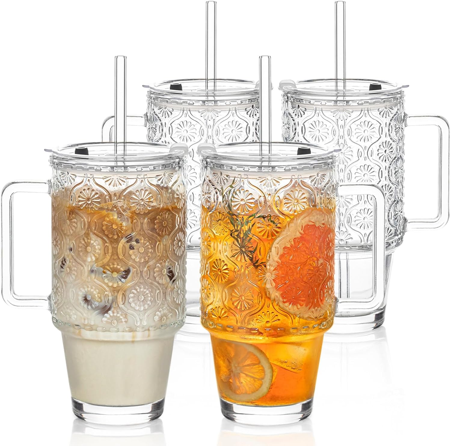 - Complete Glass Cups with Straws & Leak-Proof Lids - This 4-pack includes matching splash-proof lids and BPA-free straws, creating the ultimate spill-resistant drinking solution for office use, car travel, or outdoor activities with cold beverages.
