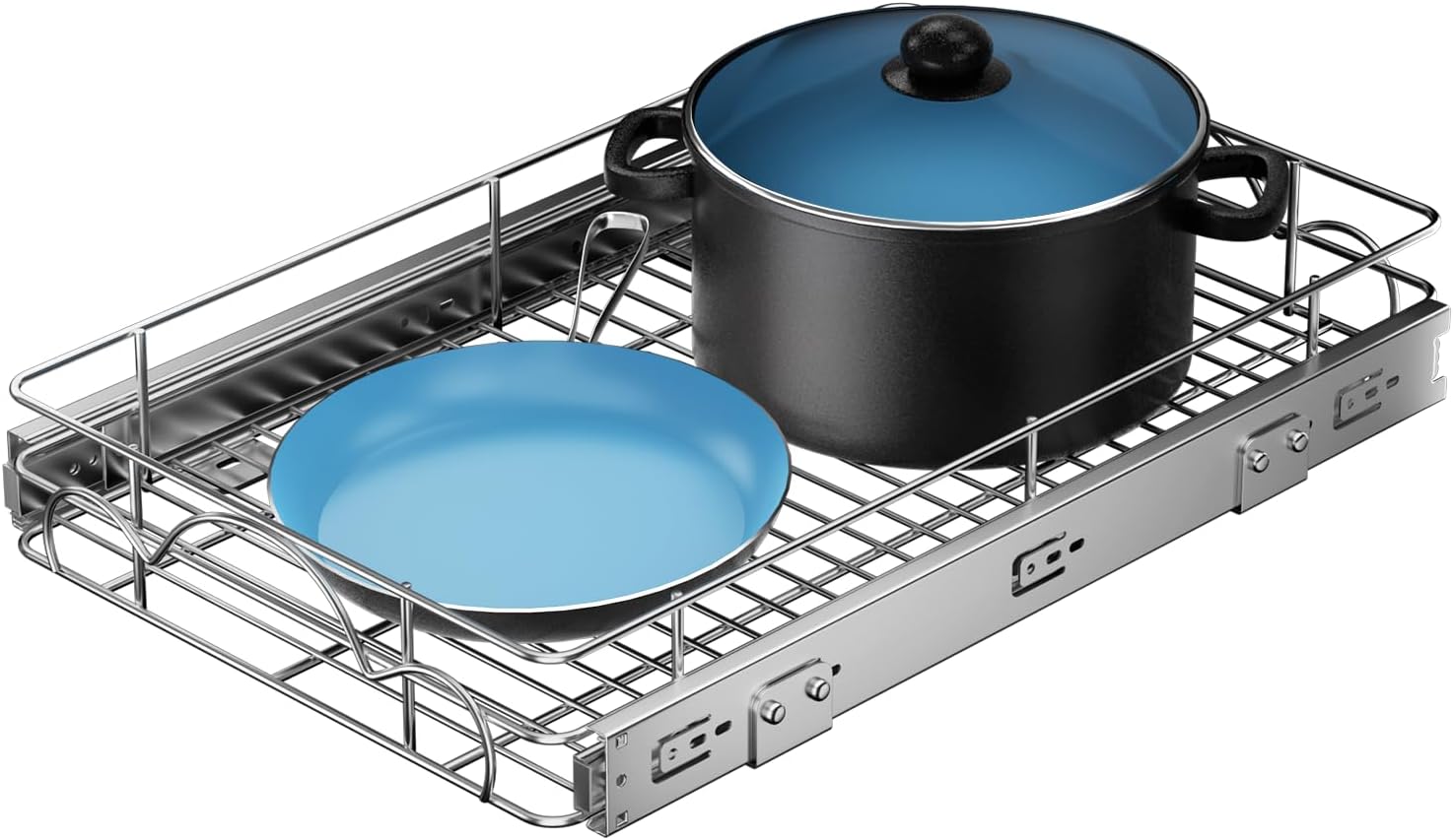 - ăHigh-Quality Craftsmanship, Strong Anti-Rust PerformanceăLIONONLY Heavy-Duty pull out drawers for cabinets are polished by a variety of processes, and then chrome-plated finishes are used to increase their hardness, wear resistance, corrosion resistance. Home pull out shelves suitable for any style of cabinet, easy to clean. It features an anti-scratch film that is easy to clean and leaves no marks.