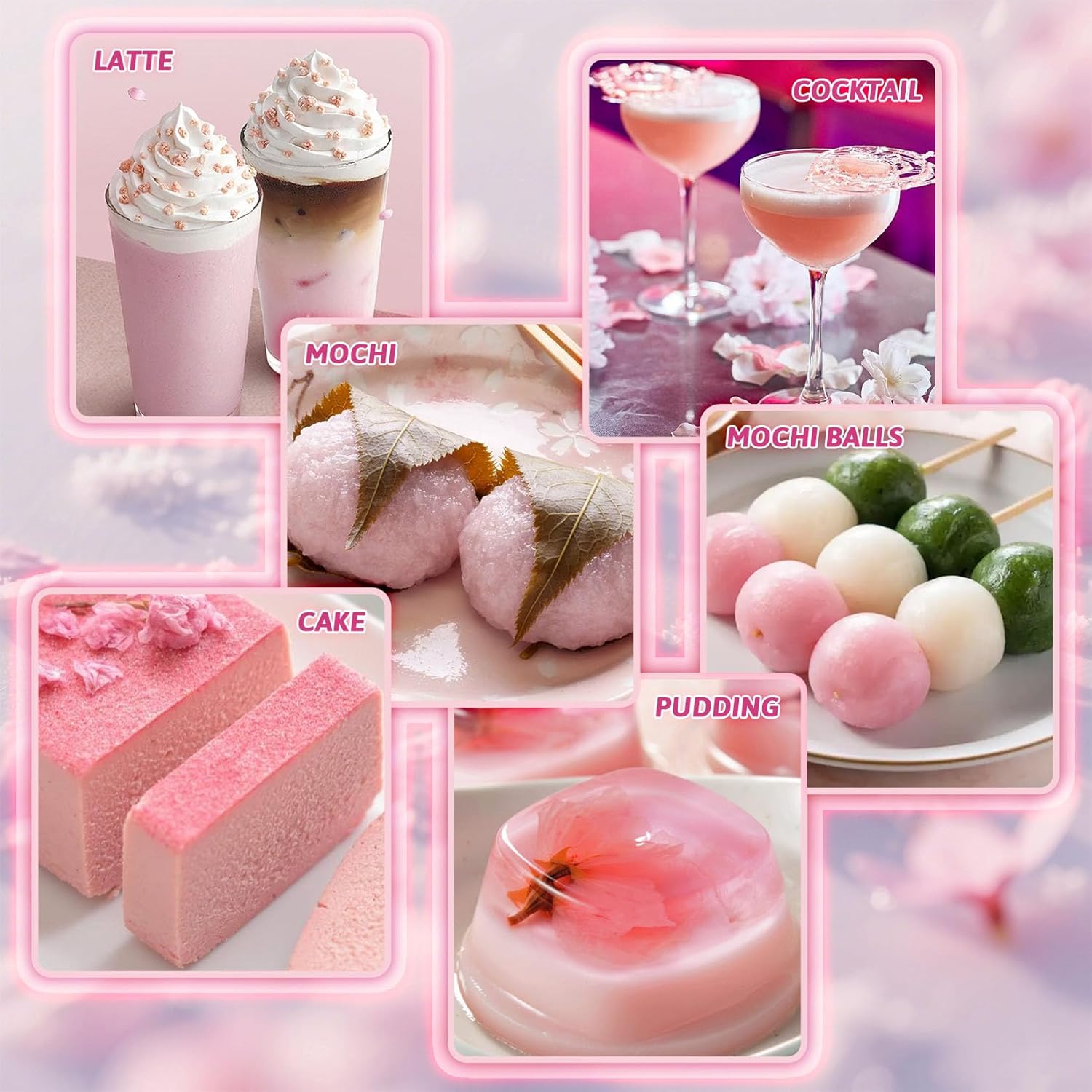 - UNLOCK VARIOUS CHERRY BLOSSOM DELICACIES - from cherry blossom mochi, pastries to ice cream, from drinks to desserts, a variety of usage scenarios meet various cooking needs. Use natural cherry blossom powder to add dreamy colors and charming flavors to food, and easily create high-value cherry blossom theme dishes.
