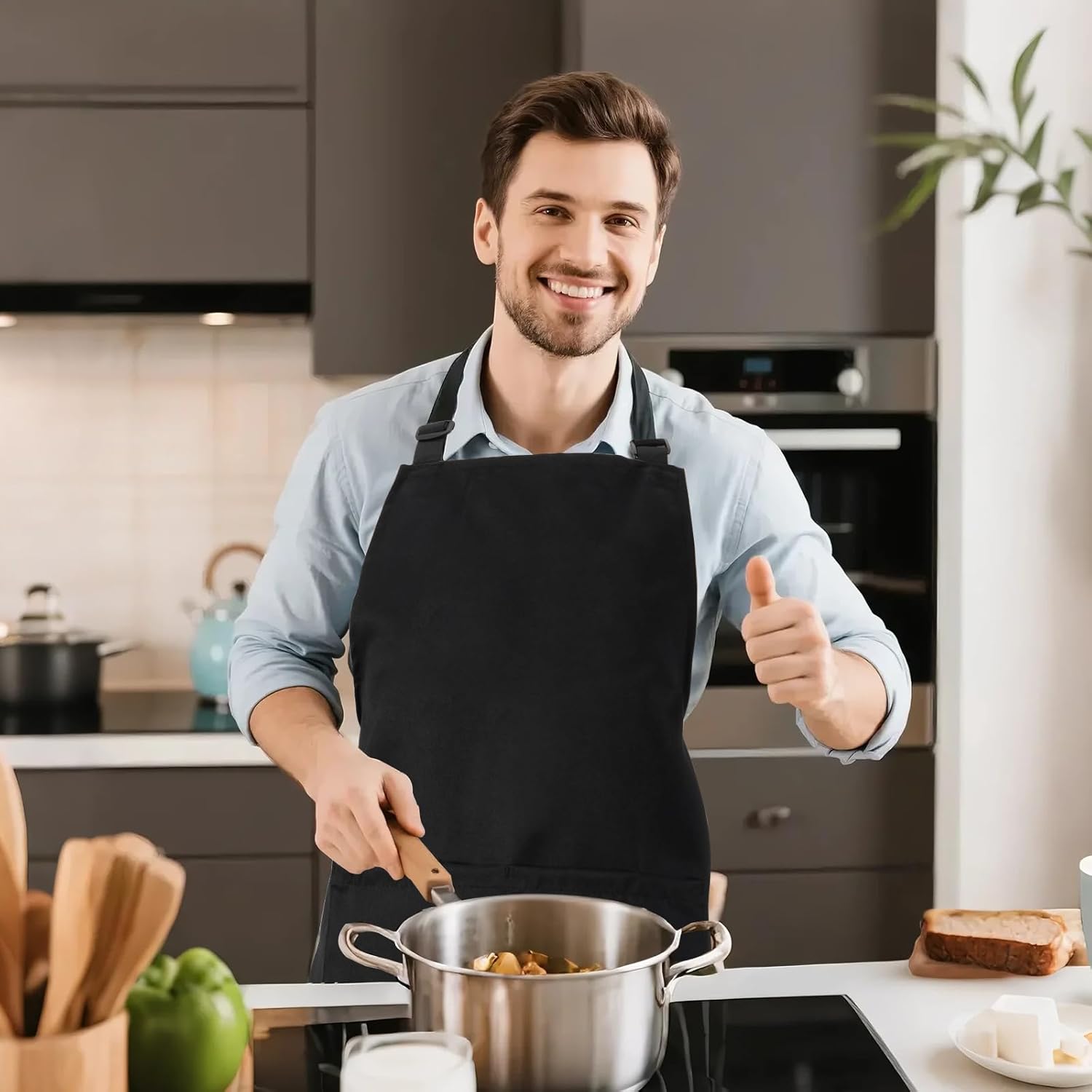 Kitchen Bib Apron for Women Men with Pockets Chef Art Aprons for Cooking Painting Pottery Ceramics