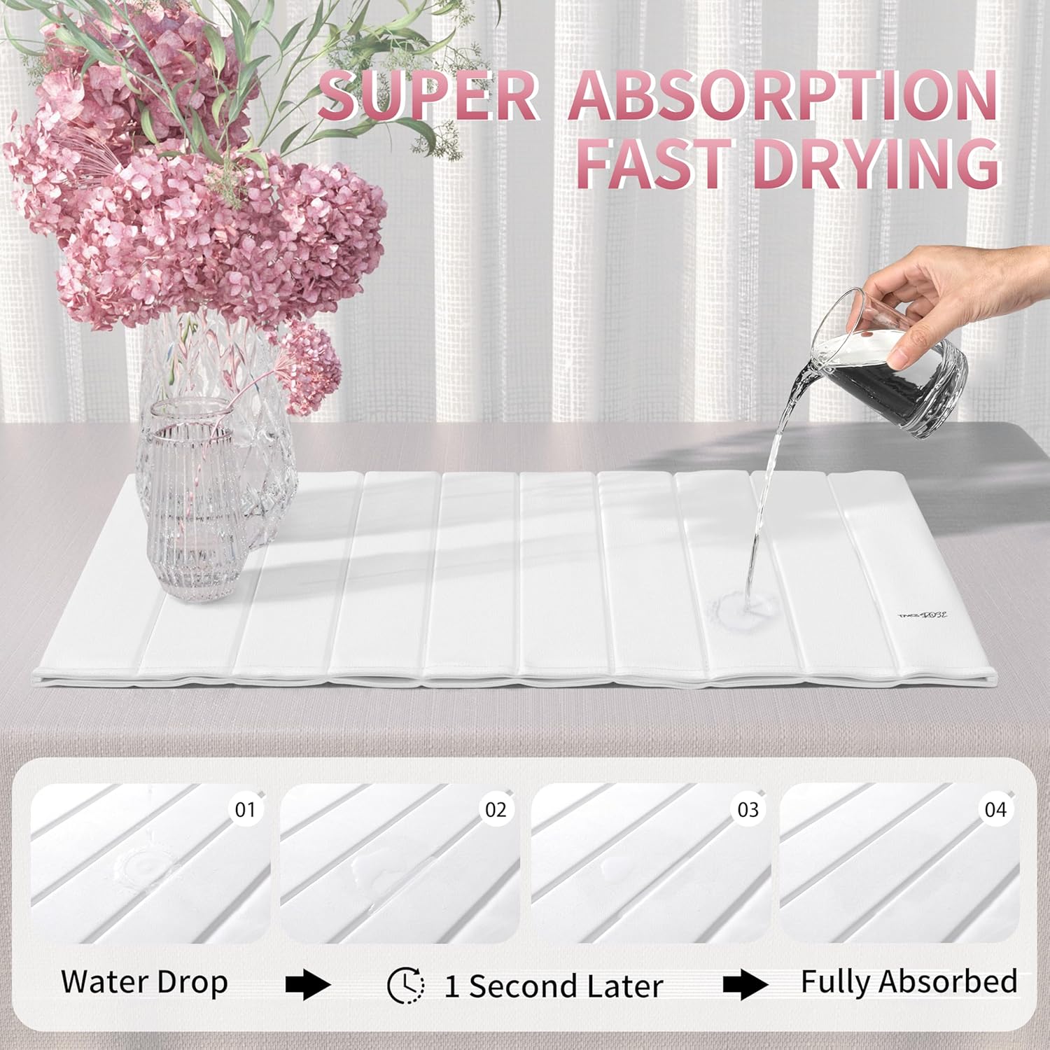 Stone Drying Mat for Kitchen Counter-Super Absorbent PU Dish Drying Mat, Quick Dry Stone Mat Kitchen for Dishes, Bottles & Cups, Large Foldable Stone Dish Drying Mat, Non-Slip Kitchen Mat