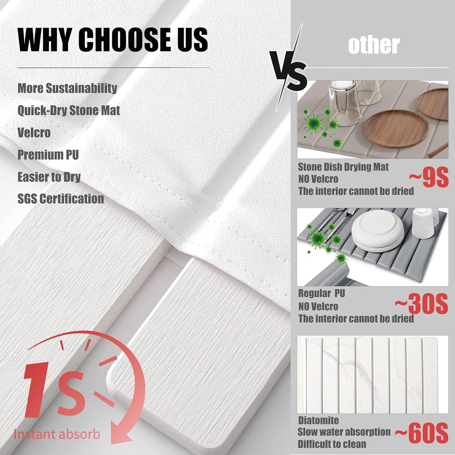 - 【QUICK DRYING & SUPER ABSORBENT】 Made from diatomaceous earth, this stone drying mat absorbs water instantly and dries quickly, keeping your counter dry and fresh while preventing moisture buildup and unpleasant odors.