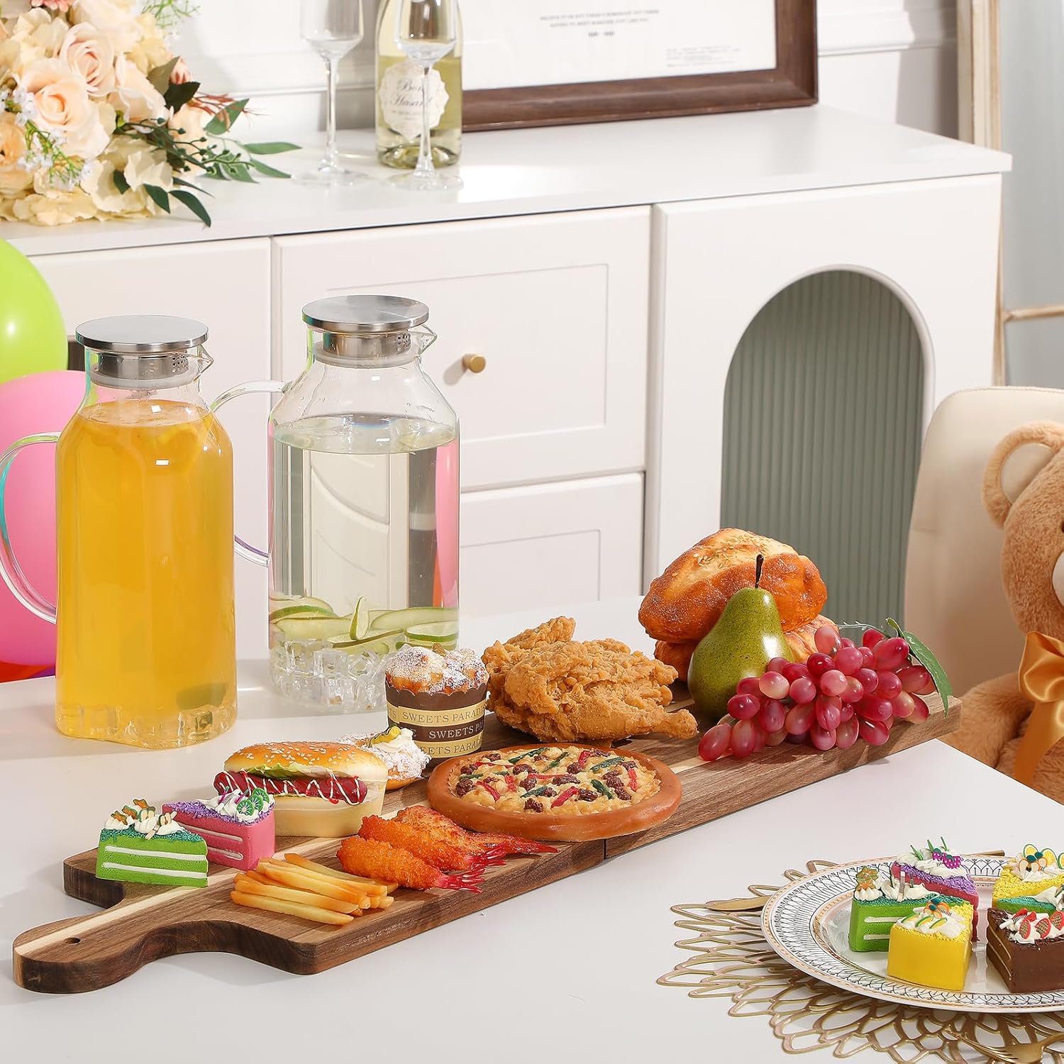 - Multipurpose Size: this large acacia charcuterie board measures 31.5 x 8.66 inches/ 80 x 22 cm; The large size can easily accommodate a variety of foods, suitable for parties, and can also serve guests cooked food, cheese, vegetables, bread, pizza, fruit, steak, meat, etc