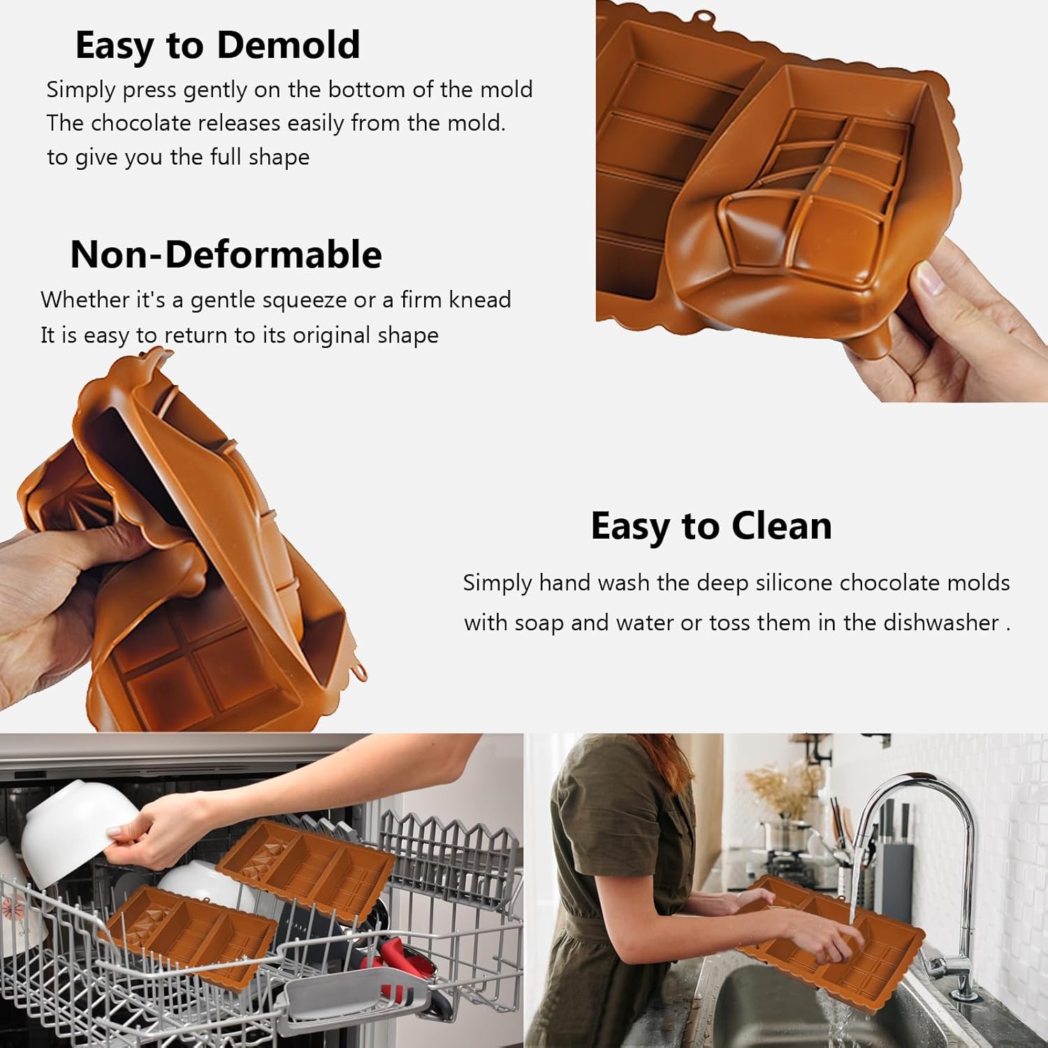 Chocolate Bar Mold - Food Grade Silicone Chocolate Molds, Non-Stick & Easy to Release Deep Mold for Dubai Pistachio Chocolates, Candy, Snacks, Desserts, Resin Art, Dishwasher Safe (2)