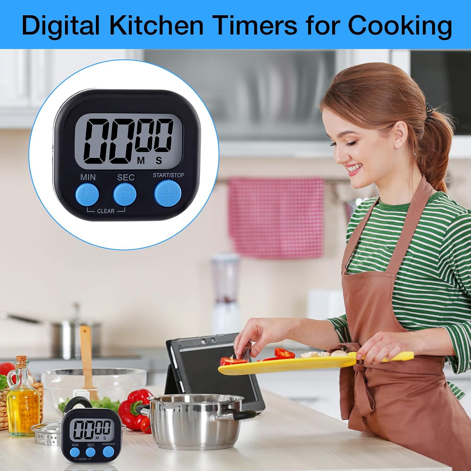 - Easy-to-use with Loud Alarm: the cooking timer with magnetic back boasts a large display and a loud alarm for user-friendly operation; With magnets and a stand, you can place it on refrigerators, blackboards, walls, or tables; The alarm is designed to be heard from another room and will sound continuously for 60 seconds until stopped