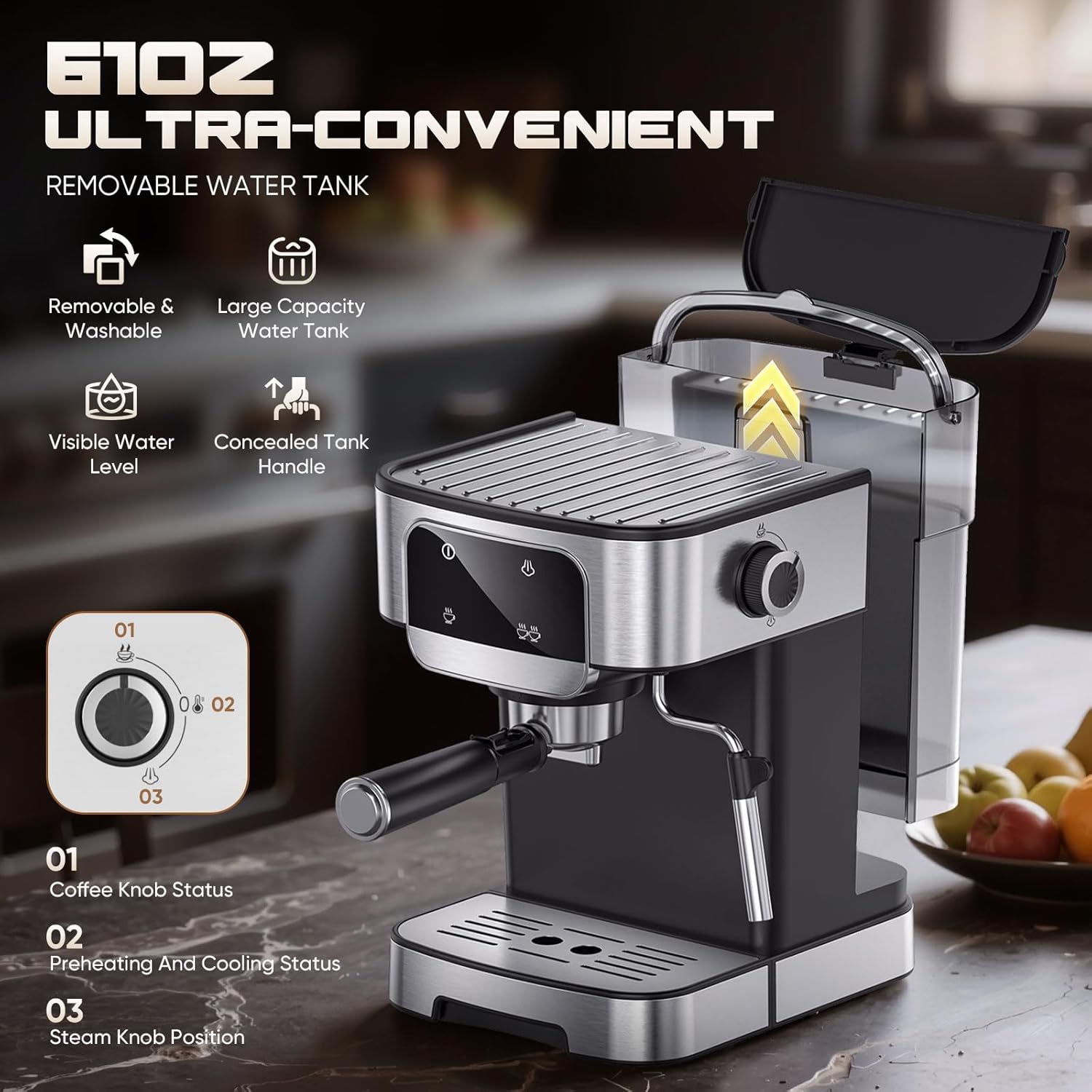 - Special Feature : Milk Frother, Removable Tank