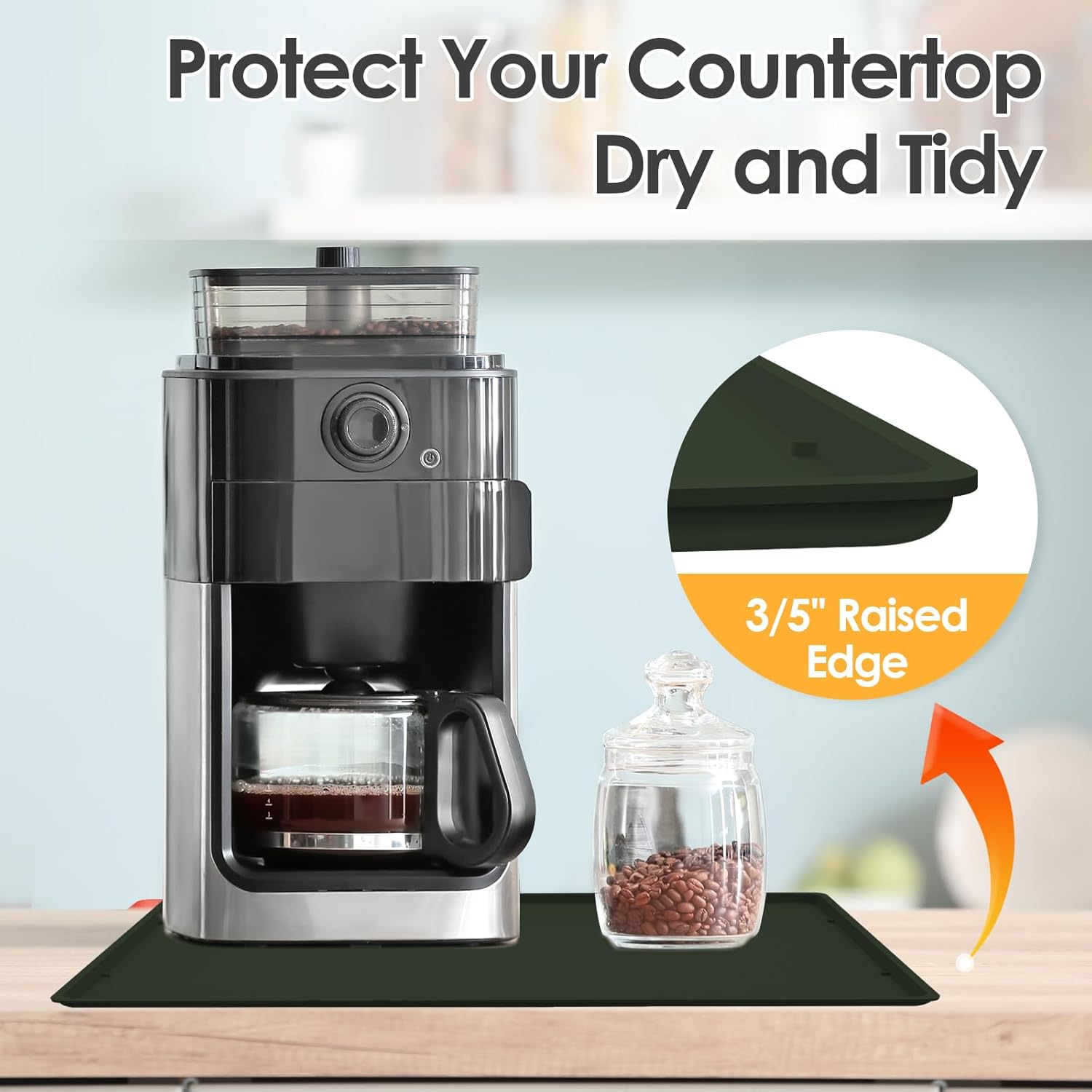 Silicone Coffee Maker Mat with Lip, 19.7'' x 15'' Heavy Duty Coffee Maker Mat for Countertops, Coffee Tray Fit Under Coffee Machine Appliance Automatic Machines Espresso Accessory, Dark Olive Green