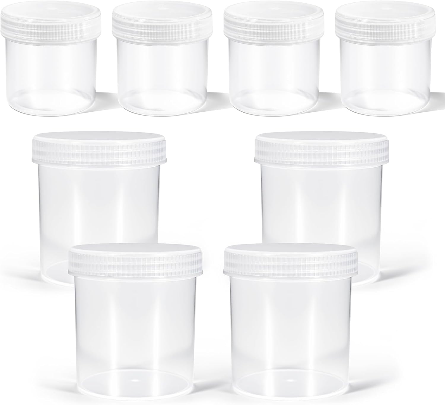 - Attentive Service: What you will get is a set of 4 pcs 3.4 oz and 4 pcs 8 oz empty plastic jars with lids. We also offer excellent service. If you have any questions or concerns, contact us, and we'll assist you promptly